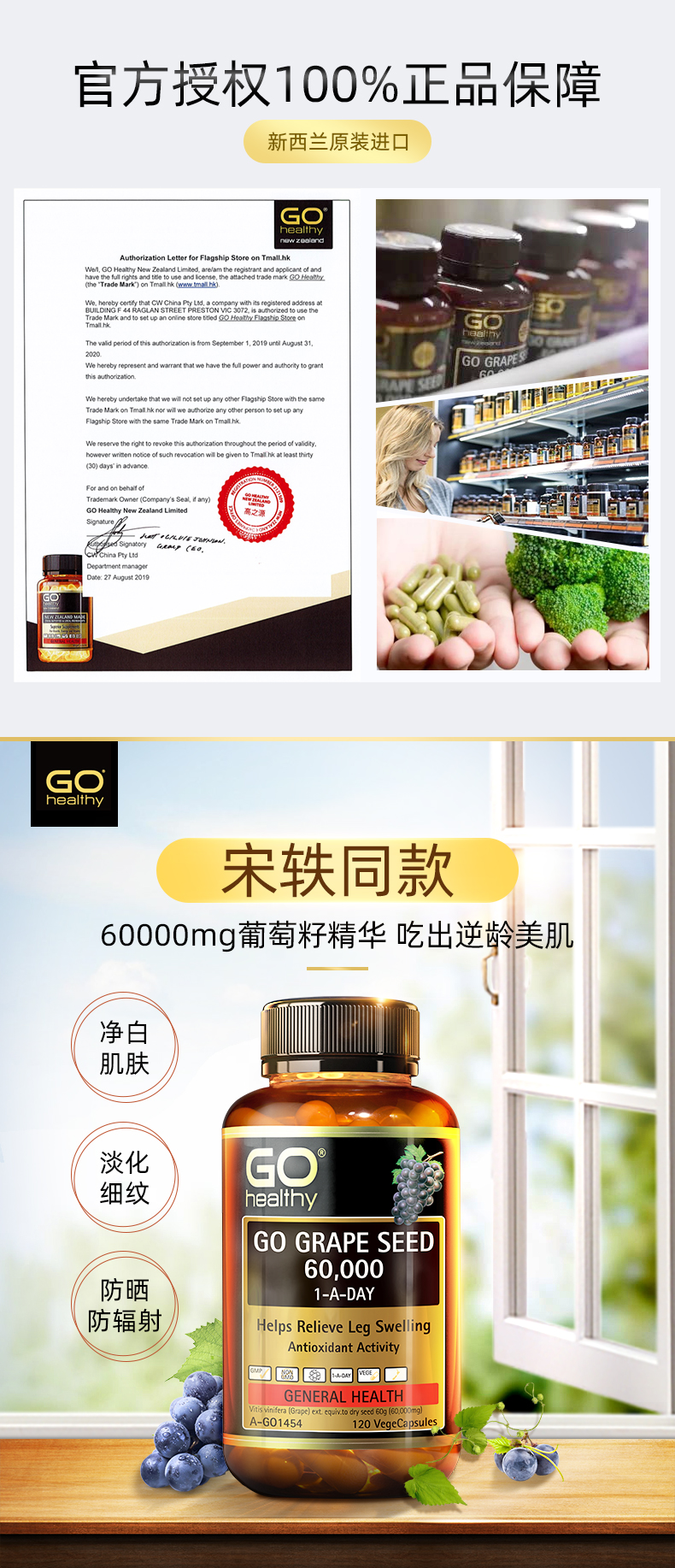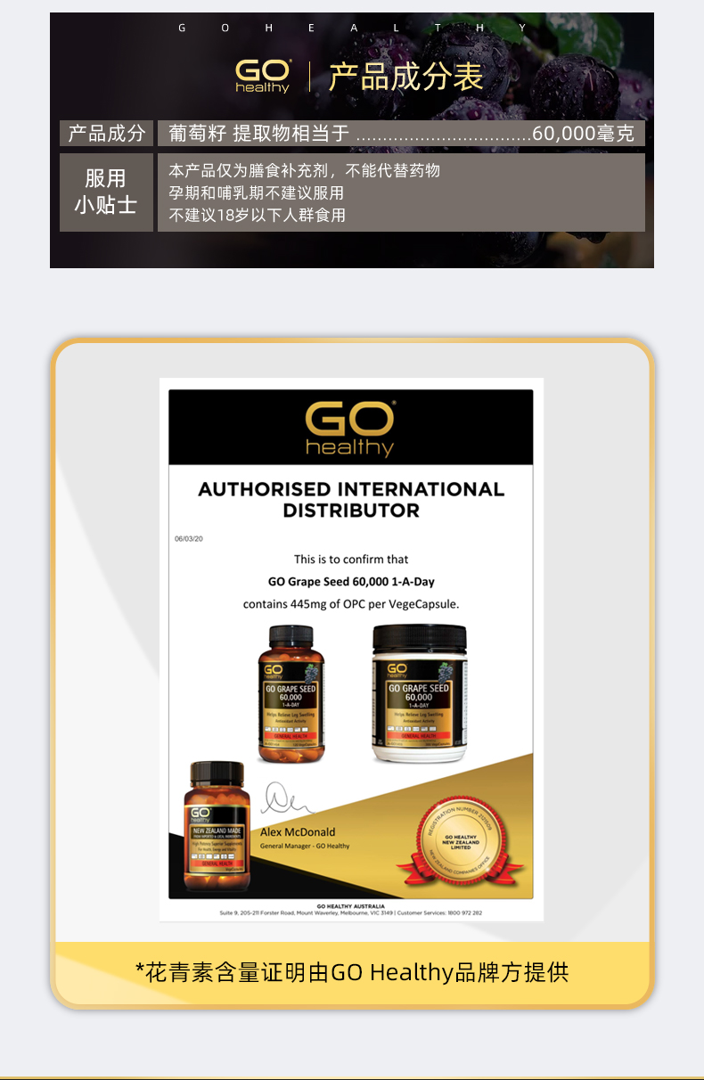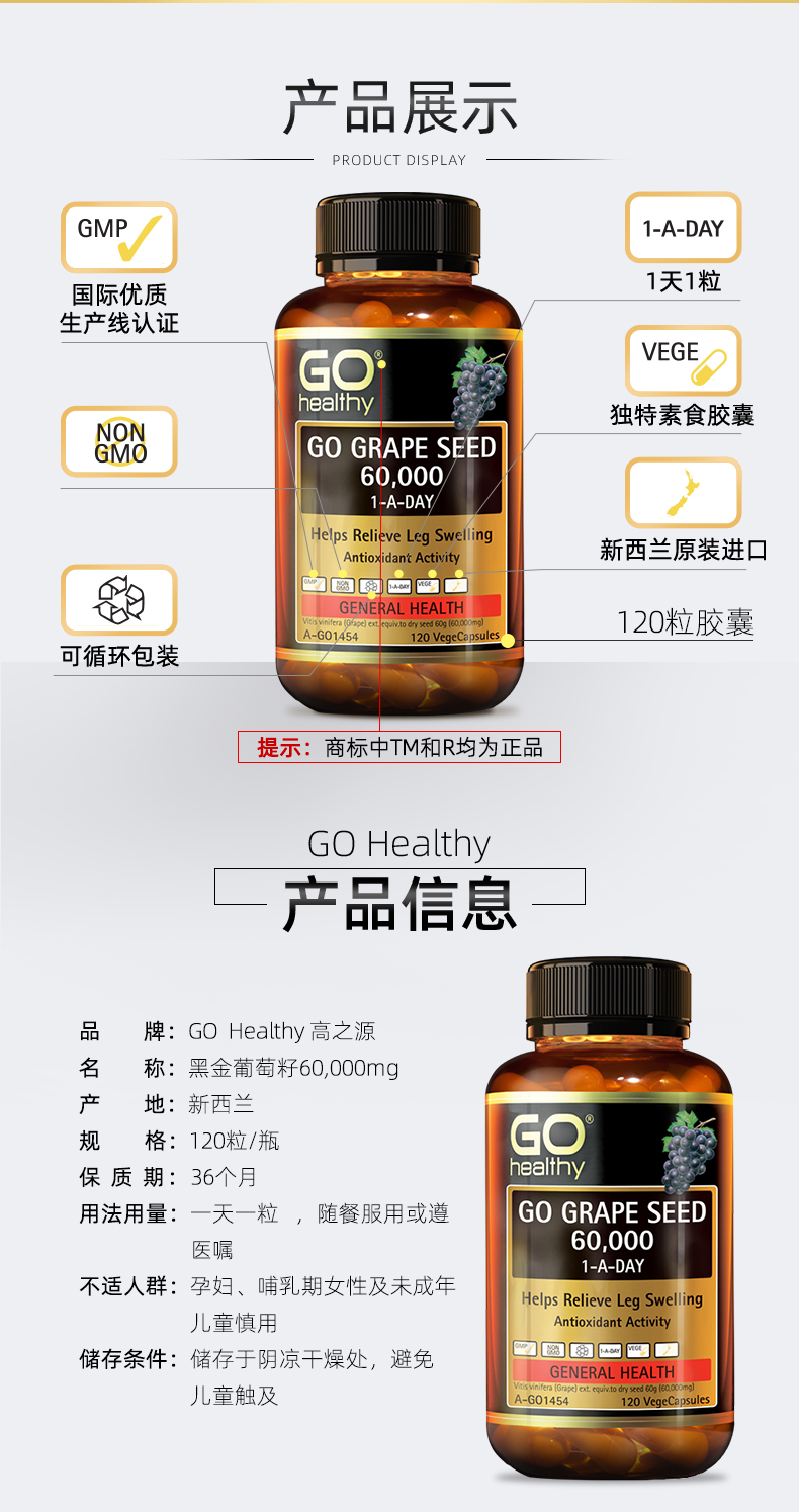 GO Healthy高之源葡萄籽粉精华60000mg美白养颜淡斑120粒