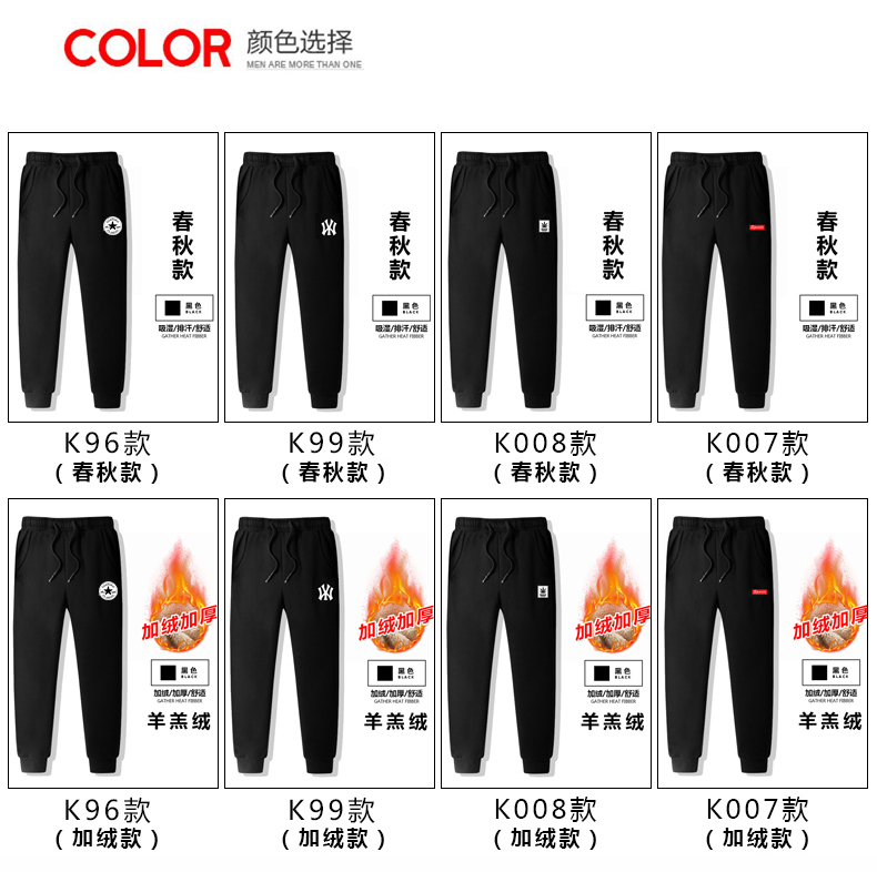 加绒裤子男士秋冬季韩版潮流嘻哈棉卫裤潮牌运动束脚加厚休闲长裤