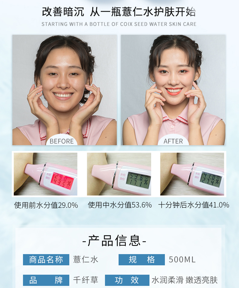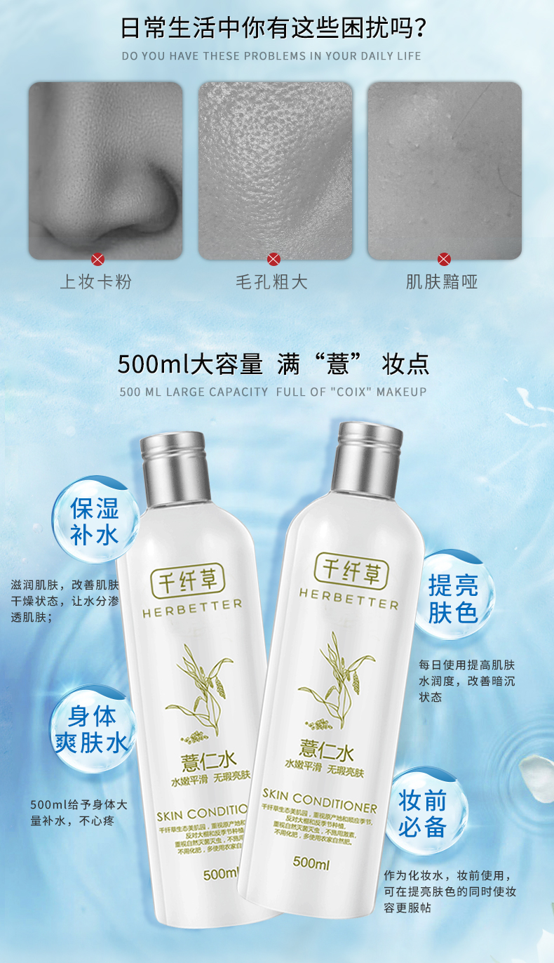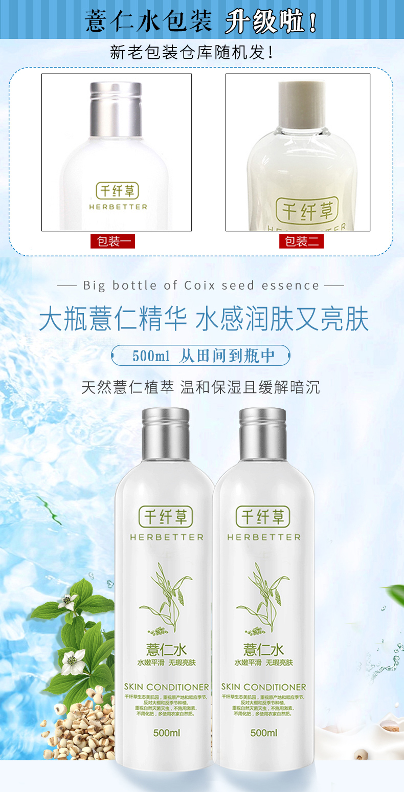 千纤草薏仁水爽肤水女保湿补水喷雾旗舰店官网化妆水薏米水柔肤水