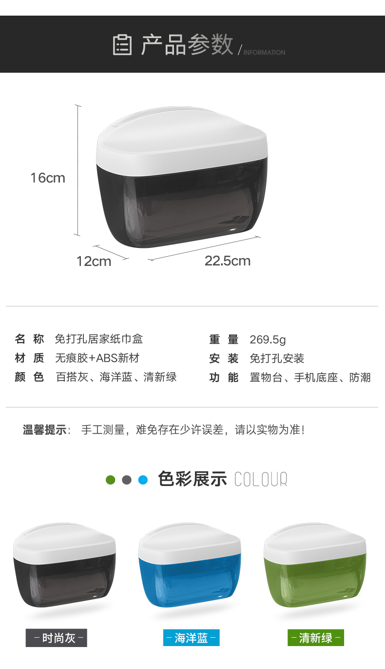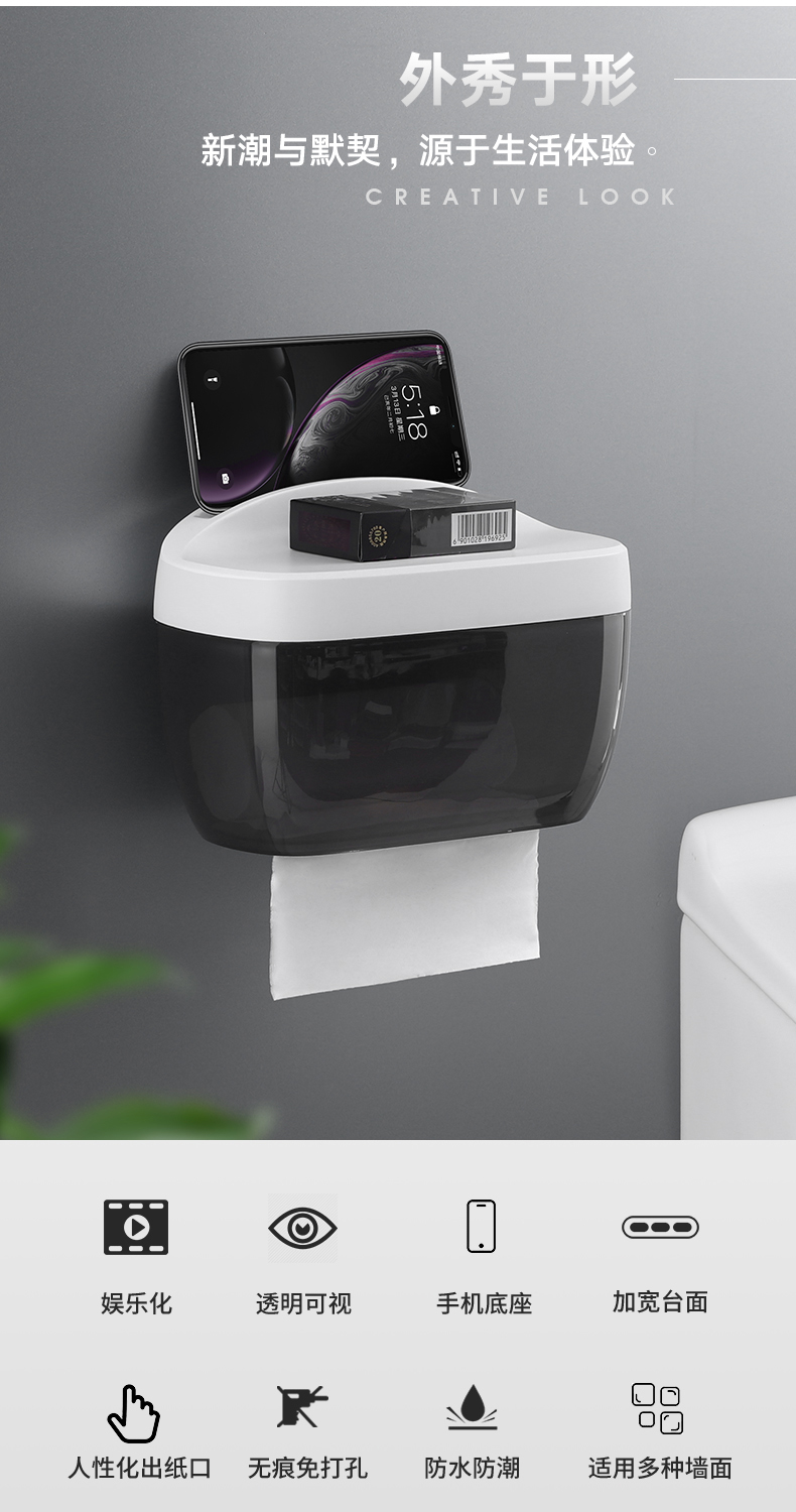 超大容量,360度防水,抽纸卷纸通用,免打孔安装,无痕不伤墙,手机置放格,上厕所玩手机有地放!一架多用【赠运费险】
