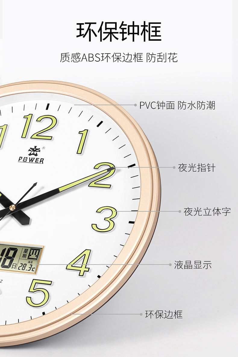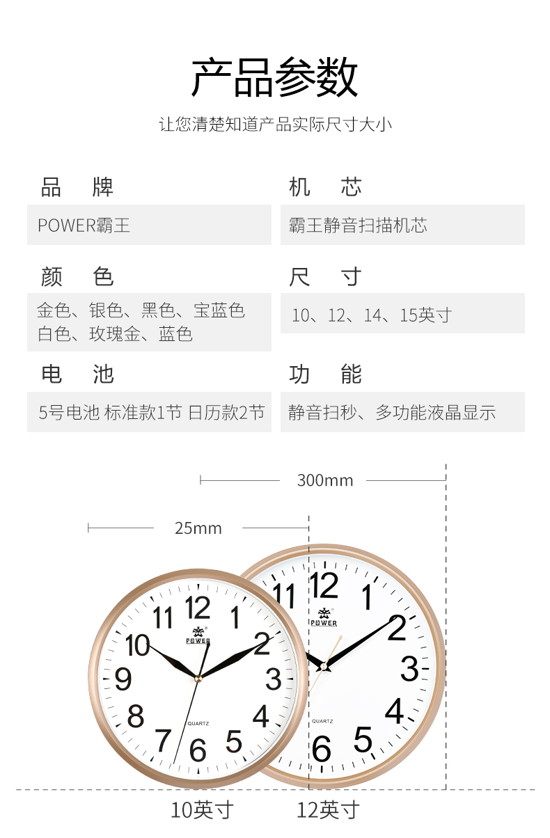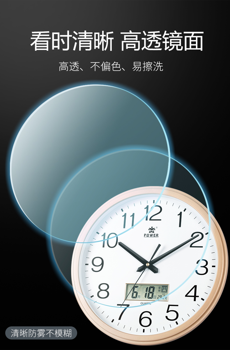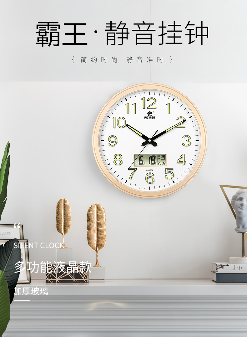 霸王挂钟客厅现代简约静音石英钟北欧创意挂表卧室钟表圆形时钟
