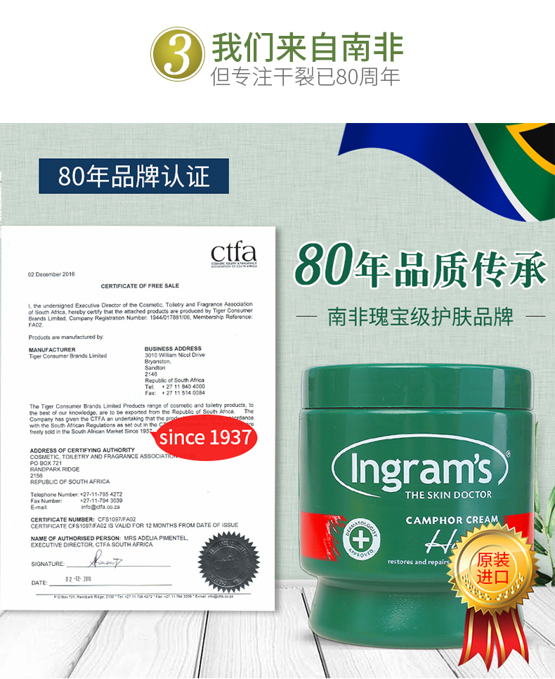 ingrams南非脚后跟干裂脚裂膏龟裂防皲裂膏护手足开裂马油修复霜