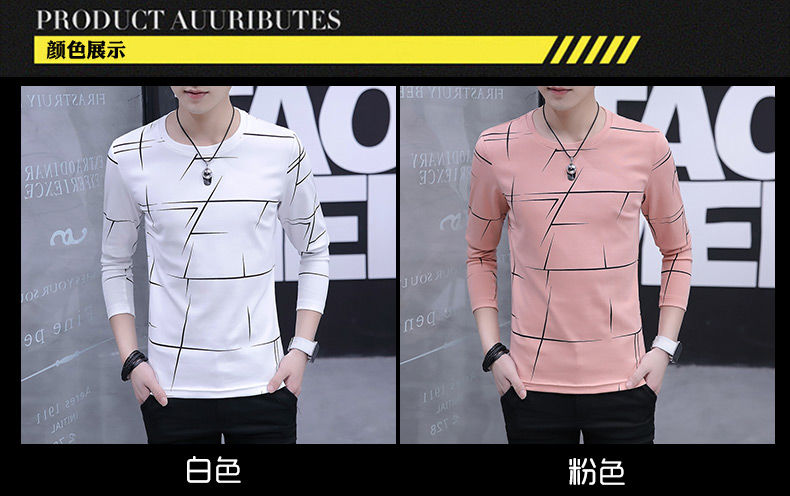 2件装秋季男士长袖t恤圆领打底衫体恤男韩版潮流修身卫衣男装衣服