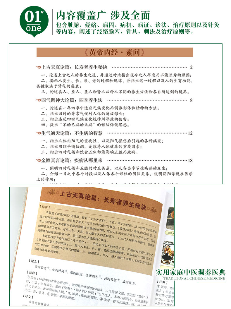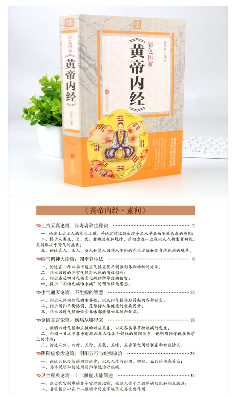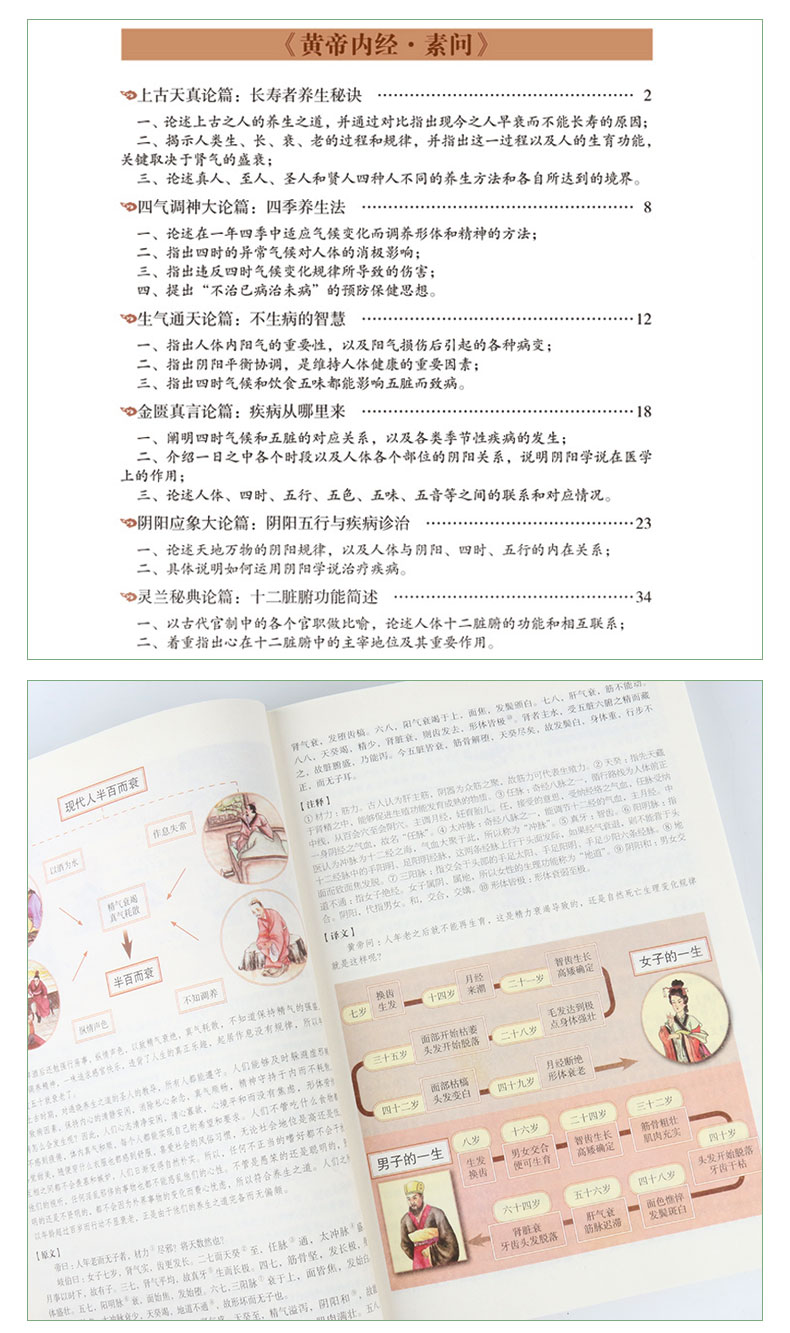 经典医学名著,彩图完整版《黄帝内经》,全彩印刷,讲解详细。详解经络穴位,中医养生大全。DI一次系统地阐述了养生理论与方法,不仅讲了怎样治病,还讲中老年爸妈必备养生宝典。【赠经络图】