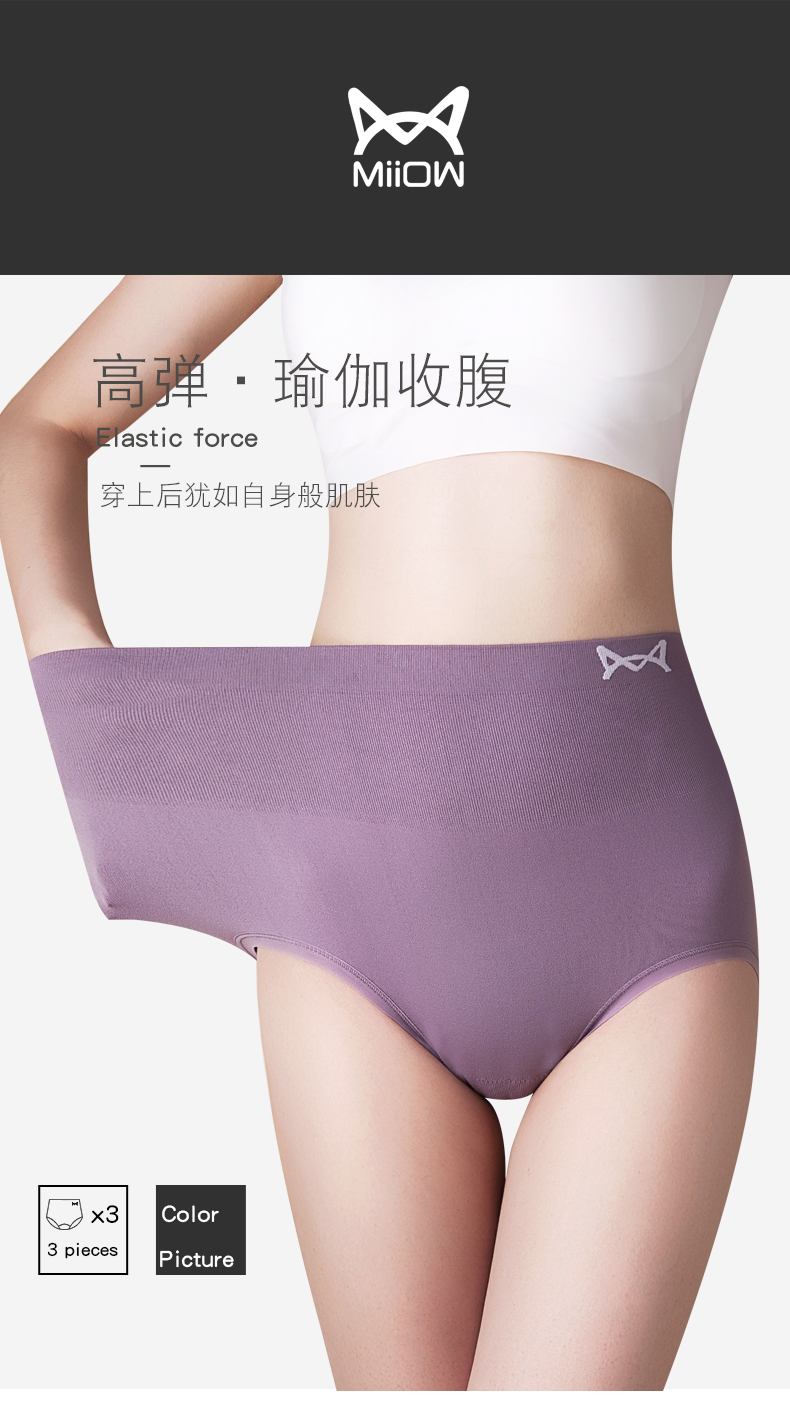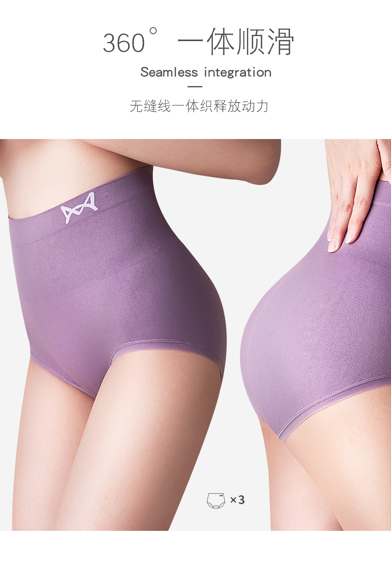 猫人高腰大码收腹内裤女士纯棉裆产后小肚子本命年大红色提臀神器