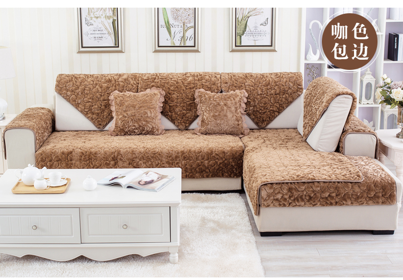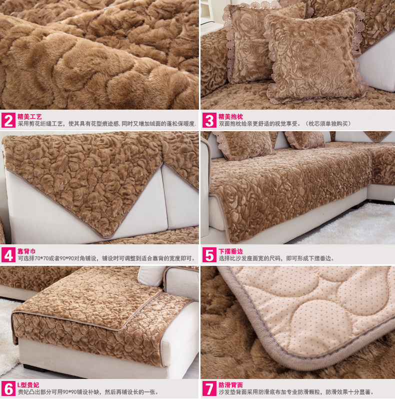 沙发垫冬季北欧加厚布艺简约现代防滑沙发套罩巾全盖坐垫毛绒定做