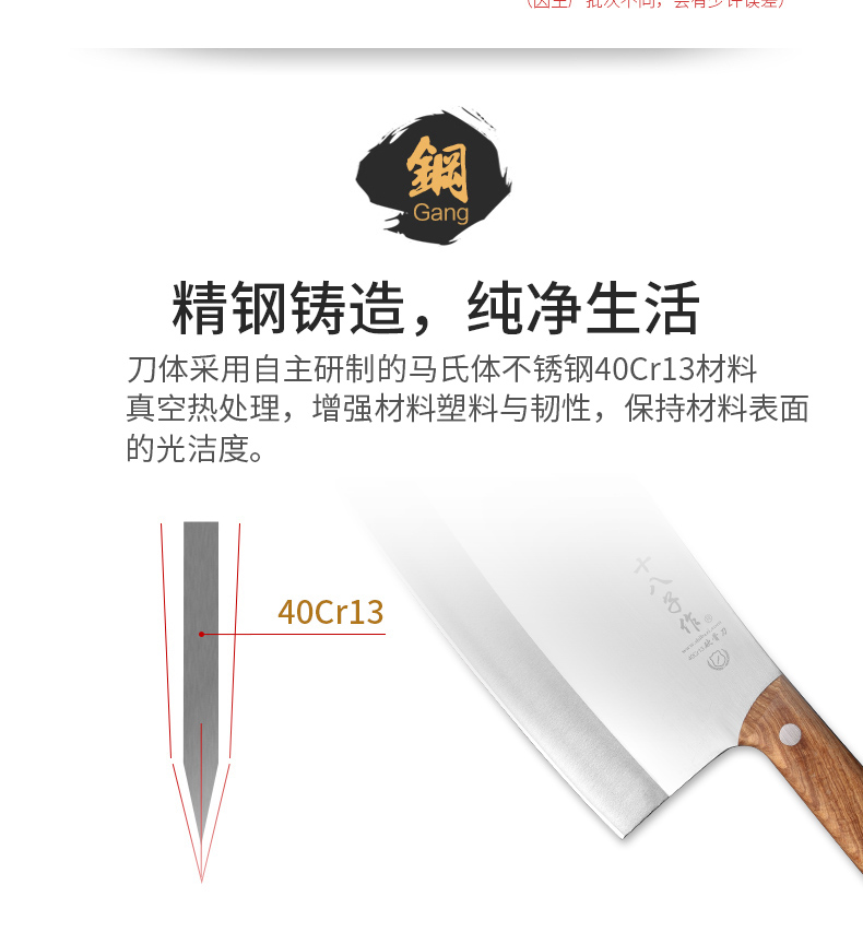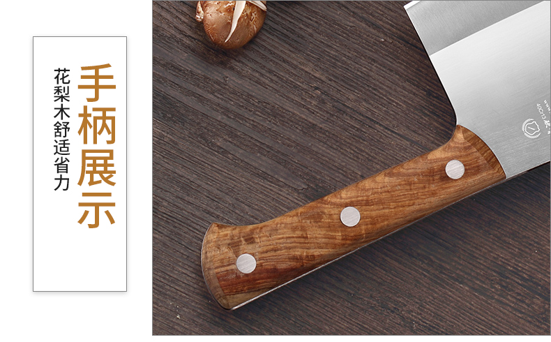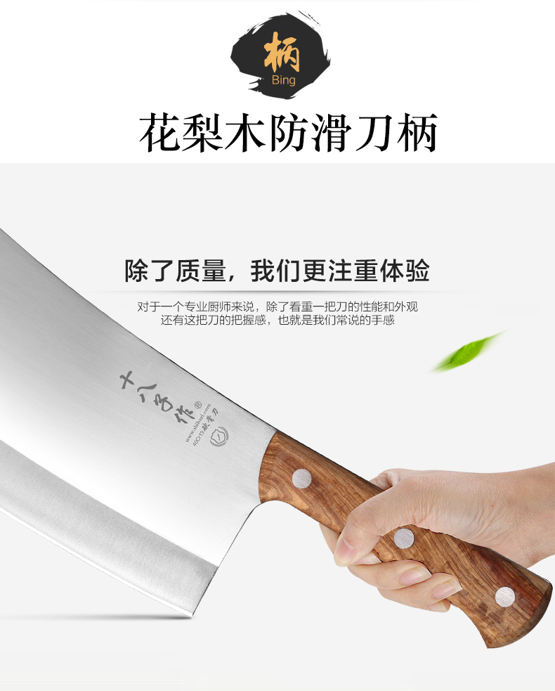 精钢铸造,纯净生活,刀刃锋利耐腐蚀,ABS防滑手柄,省力舒适,美观卫生。