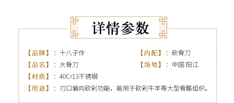 十八子作斩骨刀家用剁骨坎刀屠夫专用刀具加厚专业商用斩大骨刀
