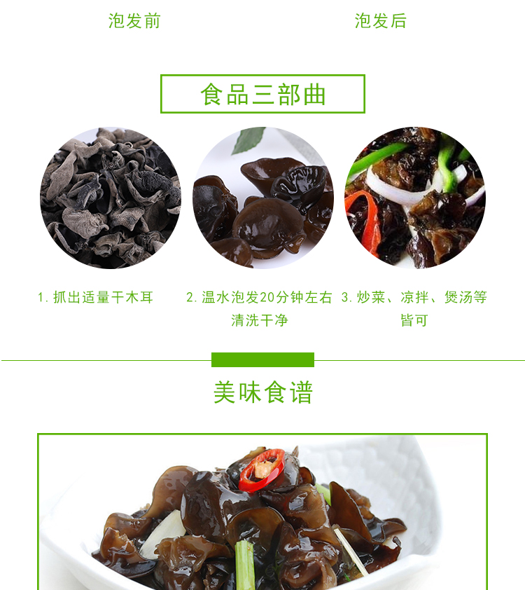 正宗东北特产,精选优质黑木耳,大自然的美味!肉厚无根,泡发率超高,1斤可泡发8斤左右,无农药无添加纯天然晒干的黑木耳,美味爽口,营养丰富,色香味俱全!!