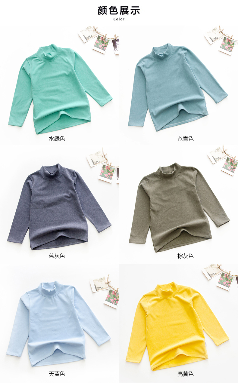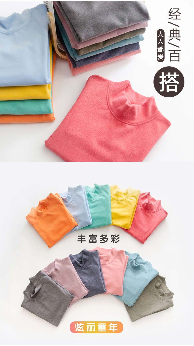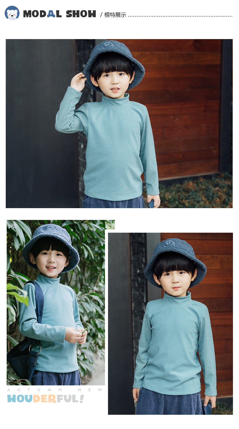 儿童宫德绒高领打底衫长袖秋冬款男童女童休闲纯色t恤保暖内搭衫