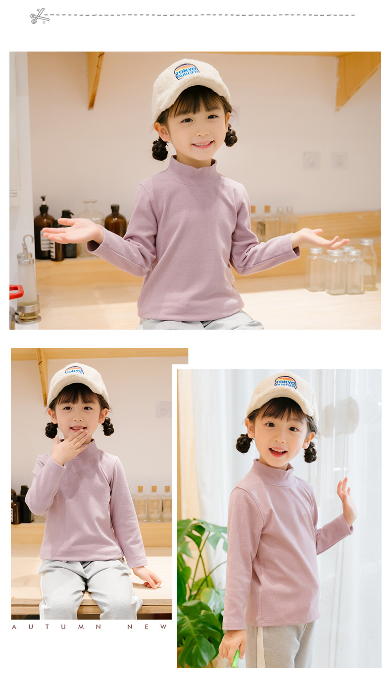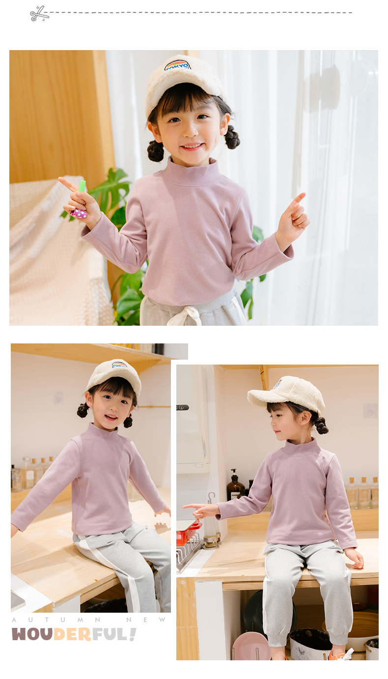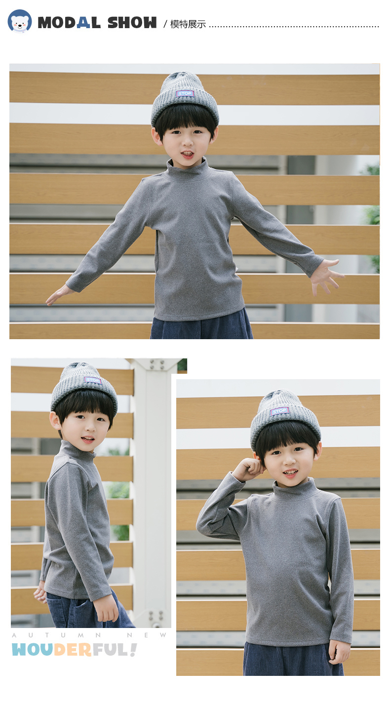儿童宫德绒高领打底衫长袖秋冬款男童女童休闲纯色t恤保暖内搭衫