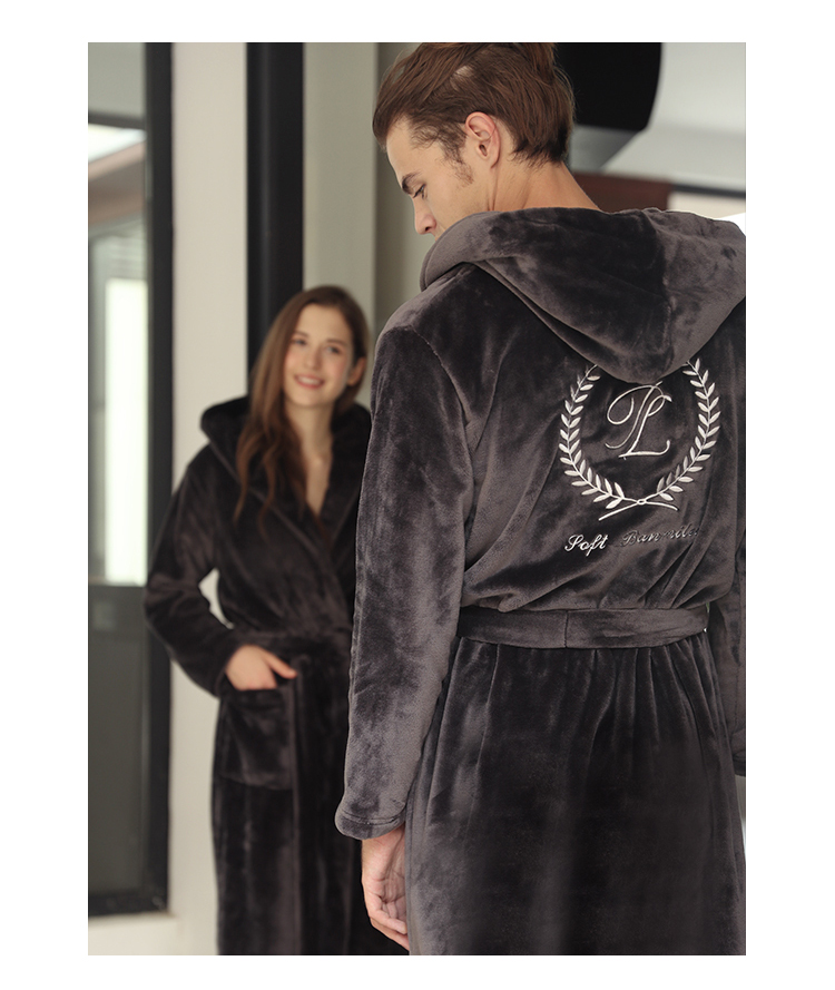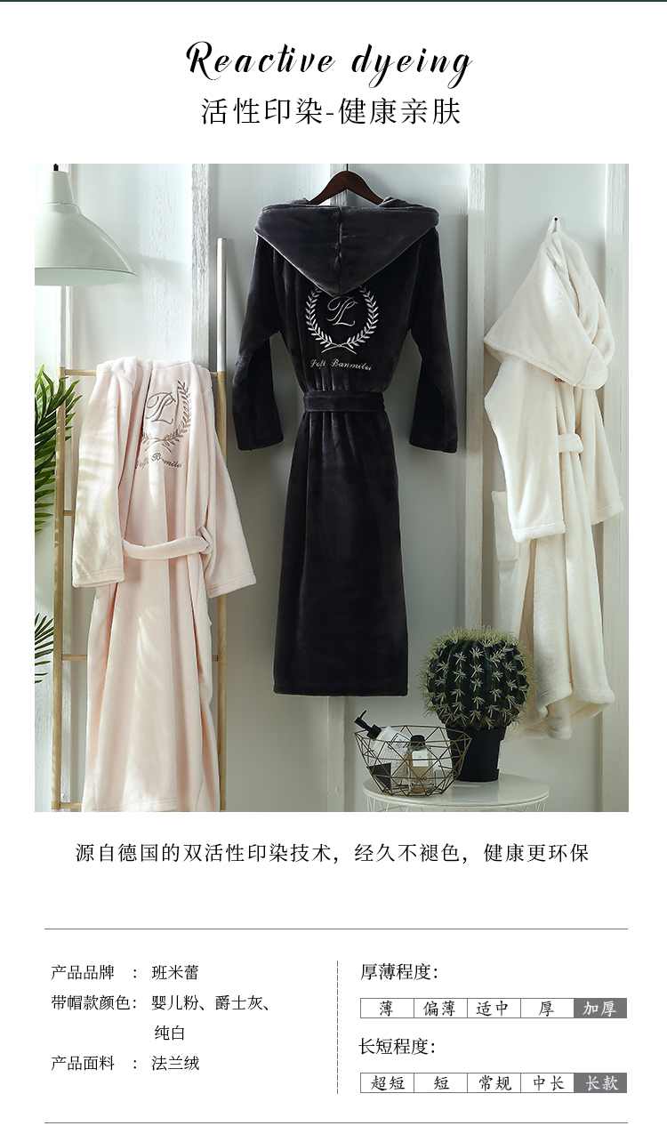 情侣款法兰绒加长款睡袍【可以盖住脚踝】很有分量和质感,手感很棒,柔软吸水,洗澡后可直接穿,与肌肤亲密接触,柔软透气,纹理清晰,挺括有型,别忘了给自己男友/老公也带一件哟~【赠运费险】