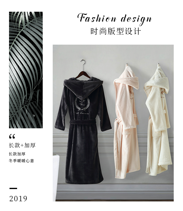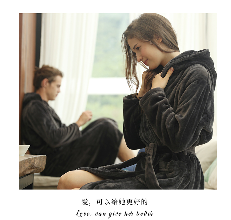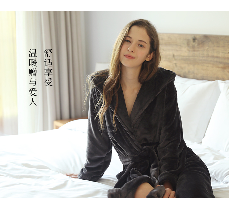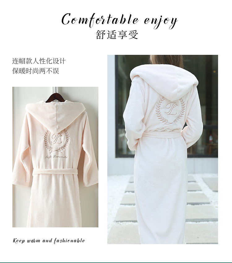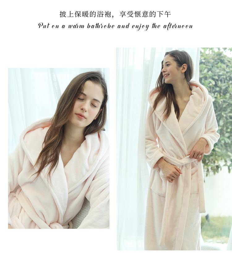 睡袍女秋冬珊瑚绒加厚加长款男士浴袍法兰绒情侣睡衣保暖带帽浴衣