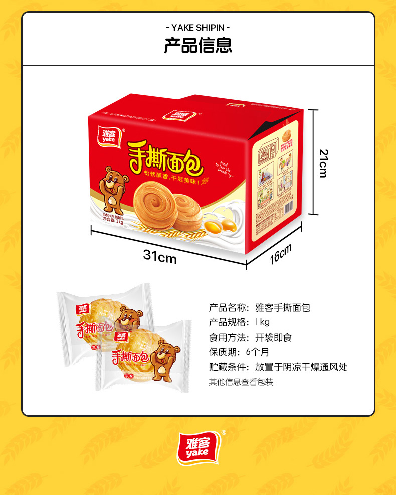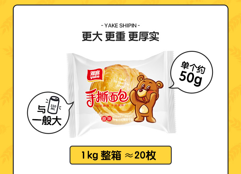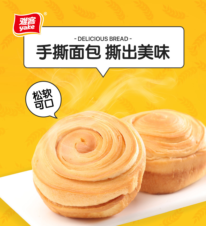 雅客 手撕面包酥香营养早餐糕点代餐口袋面包下午茶点心整箱1000g