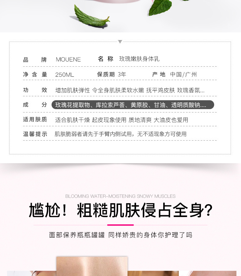 第二件10元】玫瑰靓丽身体乳滋润保湿滋润收缩毛孔润肤乳持久留香