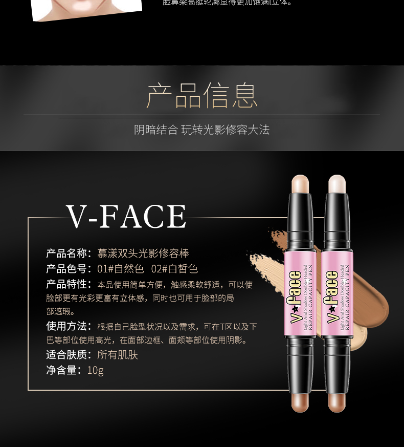 【小红书达人推荐!】第二件10元,热销128W+!17W+好评!立体双头修容高光棒!粉质细腻好涂抹,轻松打好高光与阴影,打造立体小V脸!还是防水防汗的款,不易脱妆,一天都是美美哒!