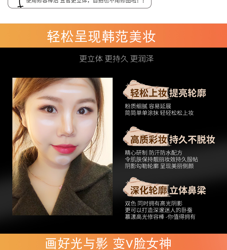 第二件10元 双头修容棒高光两用侧影提亮修颜立体V脸鼻梁阴影卧蚕