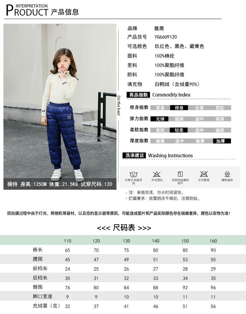 【60天跑绒免费换新】雅鹿反季促销~儿童羽绒裤,四层防护高密锁绒,内外2层,90%白鸭绒,保暖御寒,高倍蓬松,温暖一冬~线下实体店同售