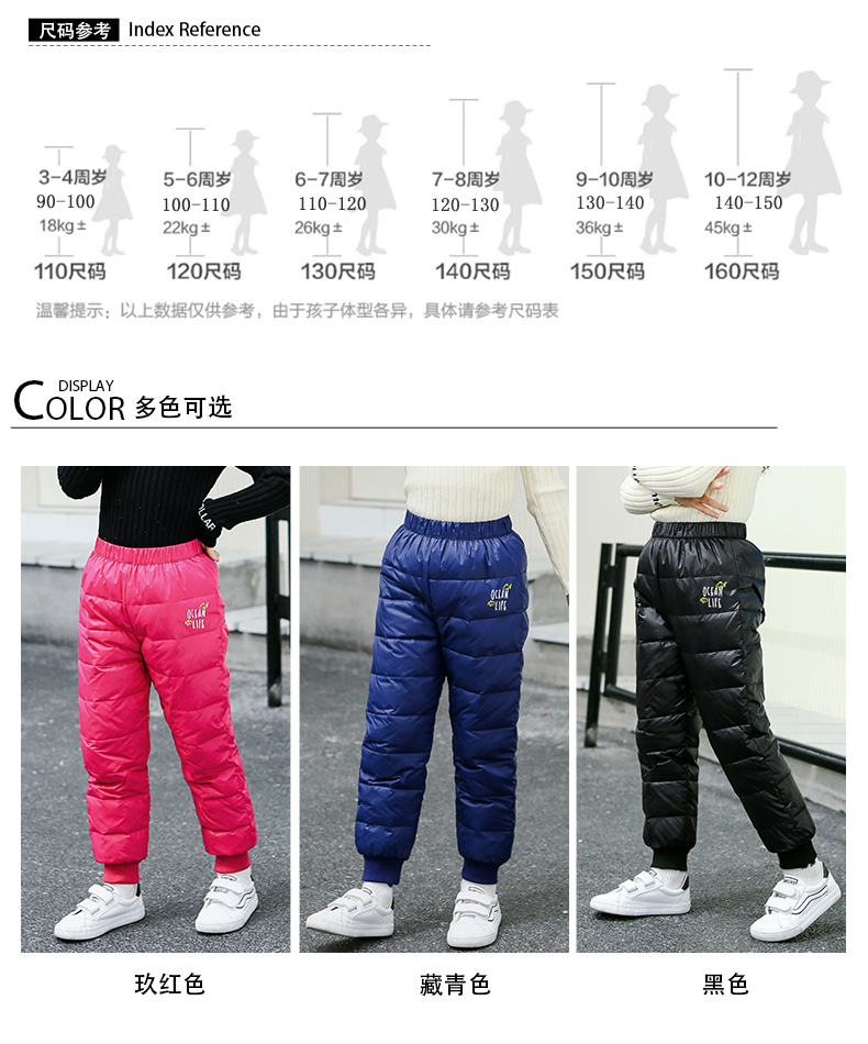 雅鹿儿童羽绒裤男童加厚女童外穿大童保暖裤子宝宝秋冬款小孩轻薄