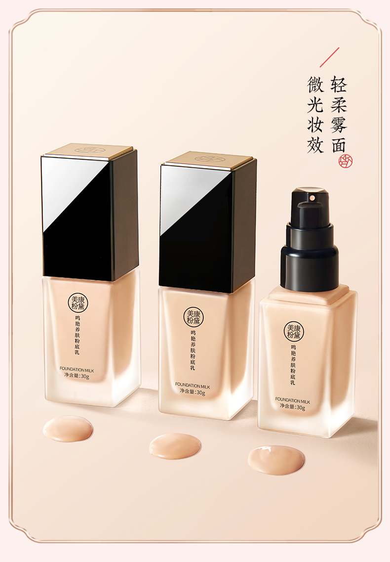 美康粉黛粉底液养肤型遮瑕强保湿持久控油小样李佳琦推荐干皮平价