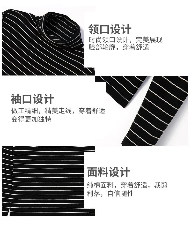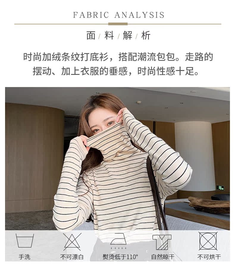 QURSTS2019秋冬女中高领长袖百搭修身套头内搭加绒加厚条纹打底衫