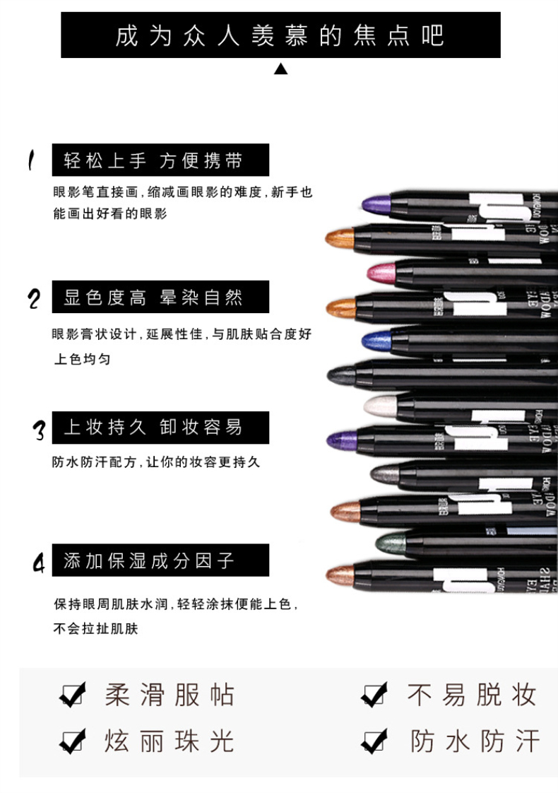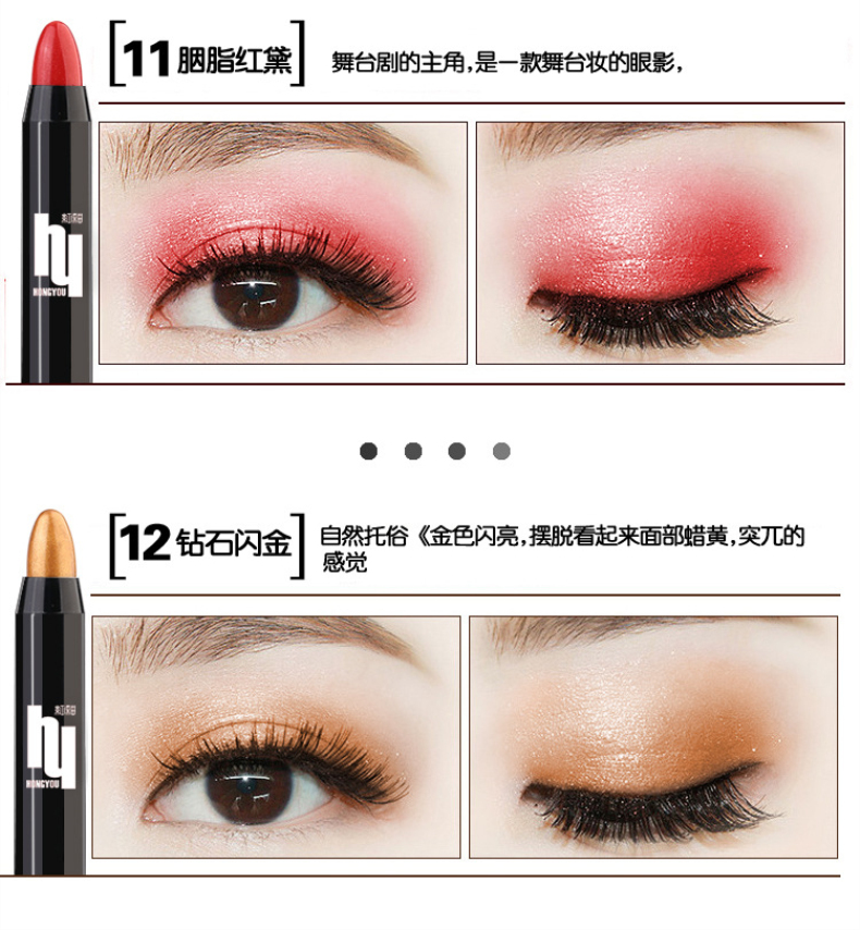 HY/红釉眼影闪粉笔棒珠光单懒人易上大地色防水初学者自然女眼妆