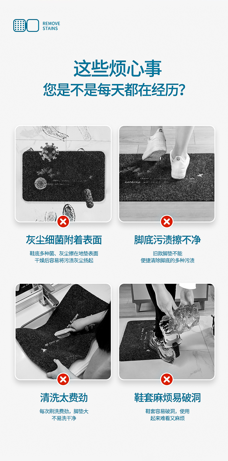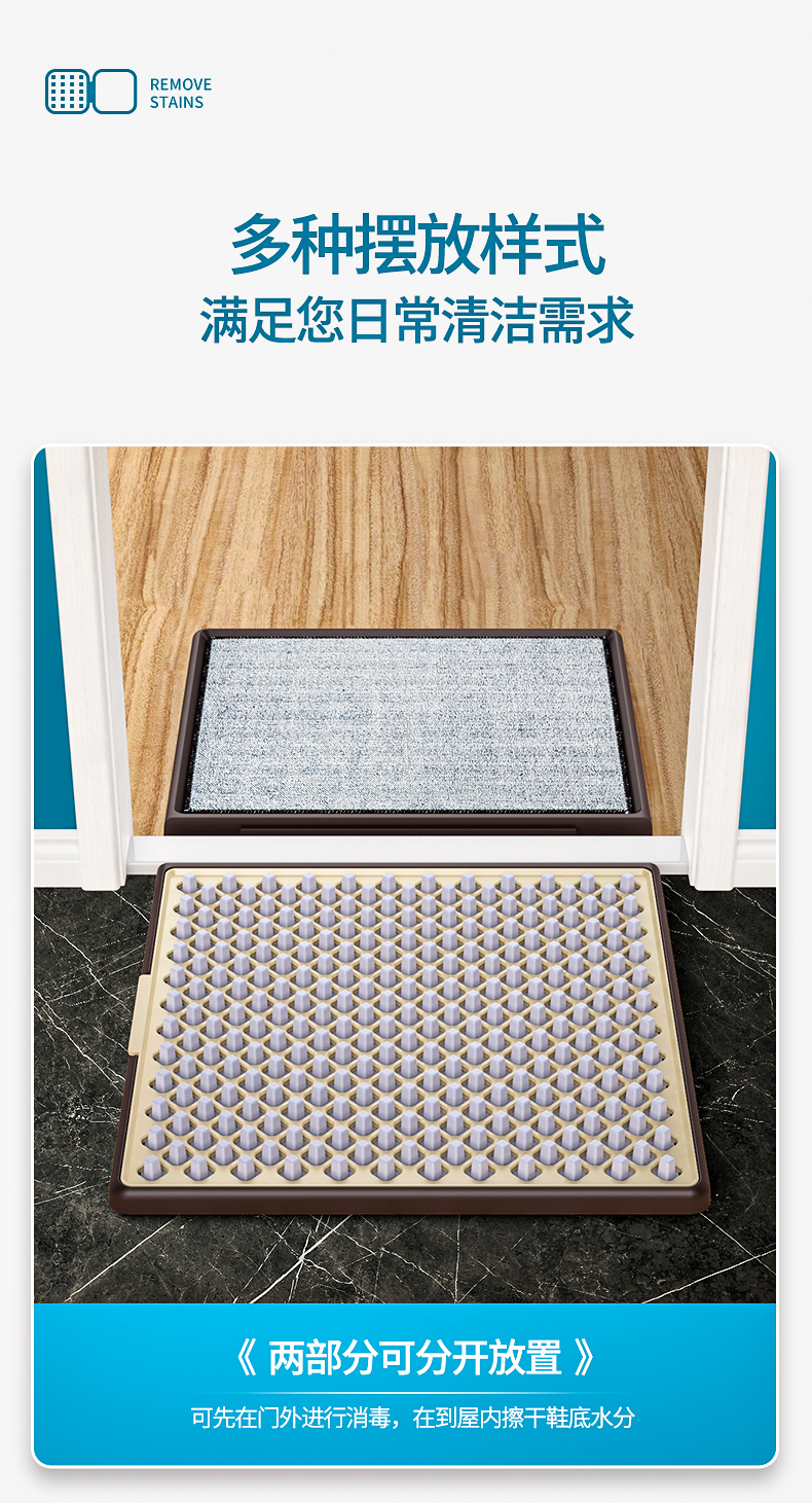 家居清洁,鞋底摩擦,洁净去污,三重清洗,双重防滑,一冲即净,历久弥新,省事省力,一款好的门垫,值得推荐