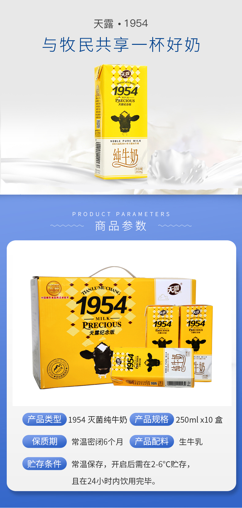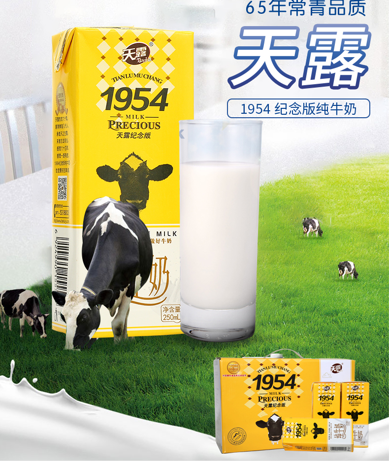 天露1954纪念版纯牛奶青海特产全脂牛奶营养早餐奶250ml*10盒整箱