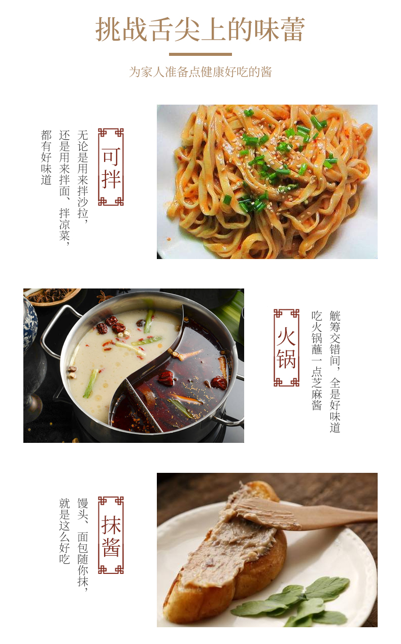 正道纯芝麻酱240g石磨研磨!!!!口感细腻,香气浓郁,它可以做火锅蘸料,也可以用来拌菜、拌饭、拌面,想怎么拌就怎么拌,比超市便宜太多啦