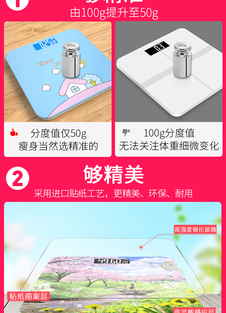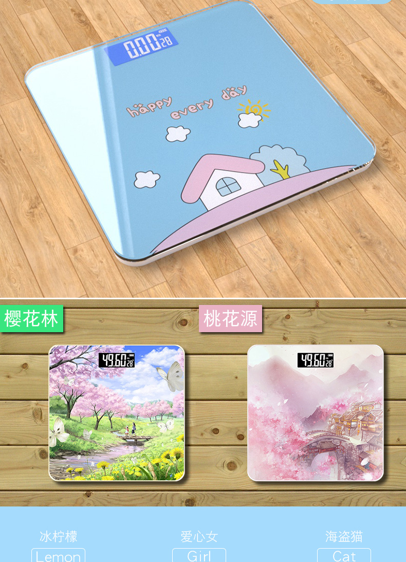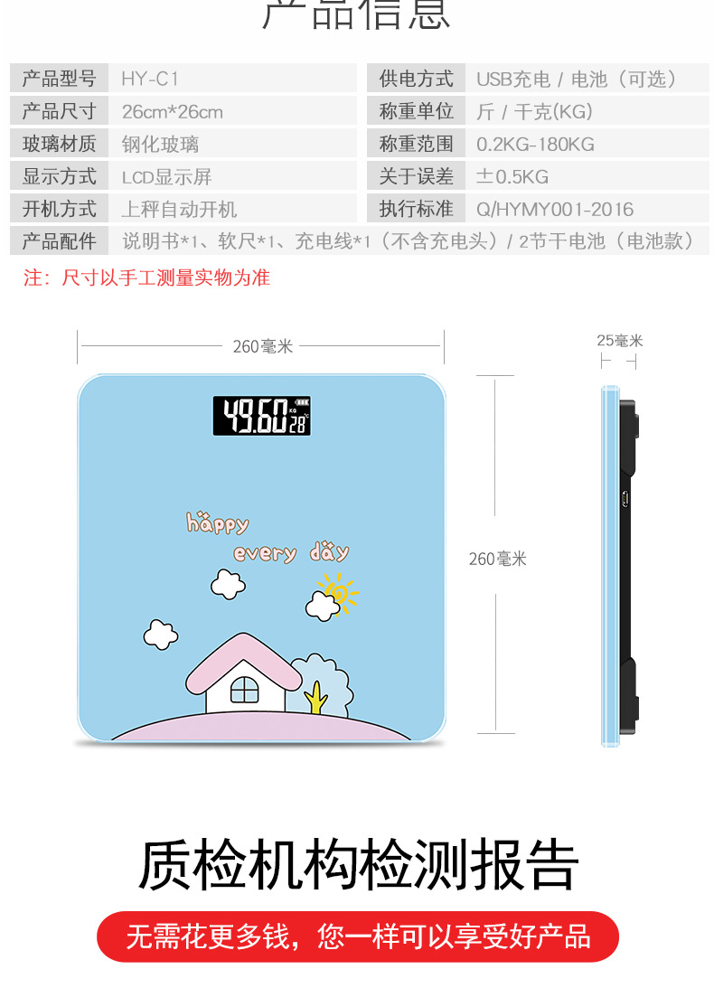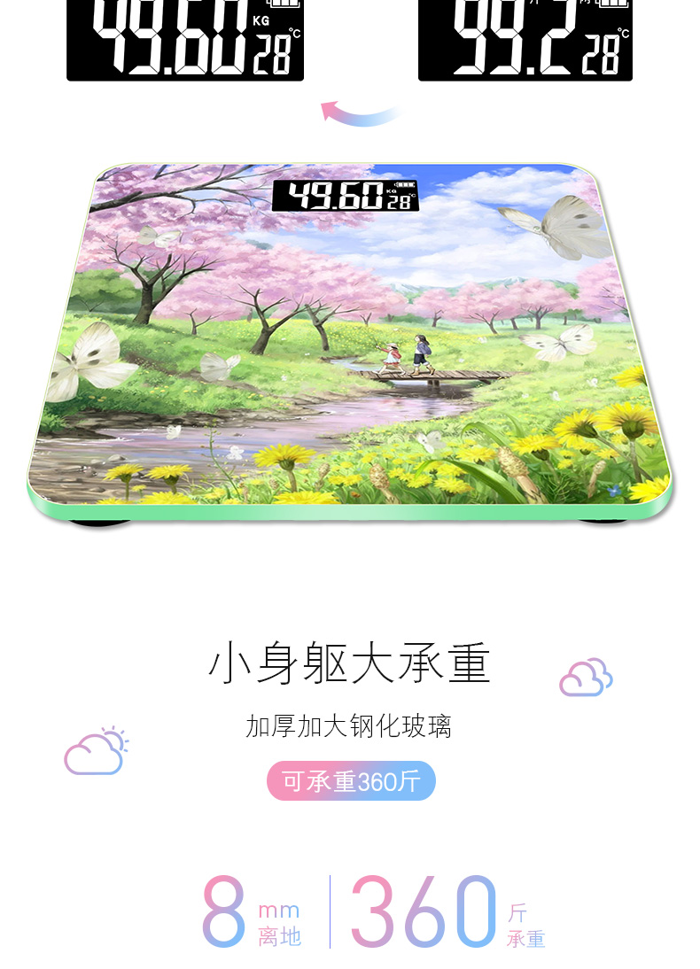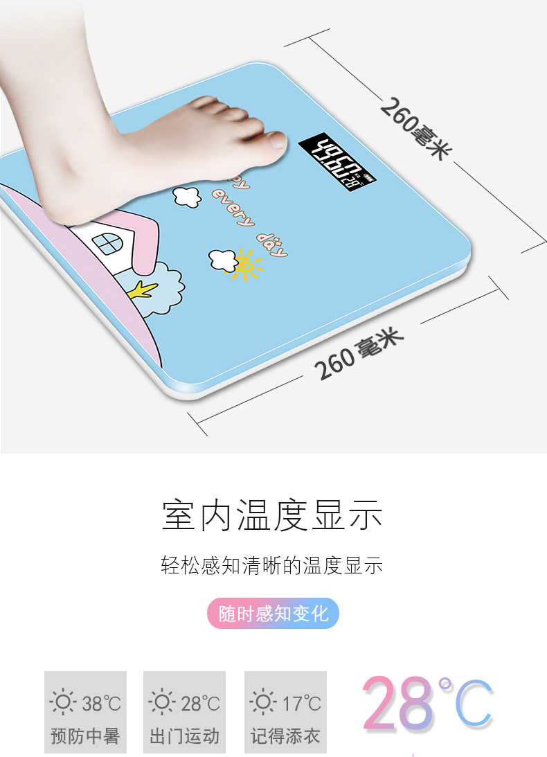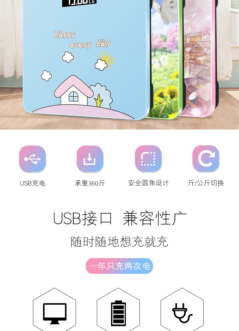 【一年只换不修十年保修】充电体重秤,精准测量LED清晰夜视,温度显示。时尚精美卡通图案,20款可选。一秤在手,在也不用去健身房啦。健康生活,你值得拥有。天猫店全好评!质量保障【赠运费险】