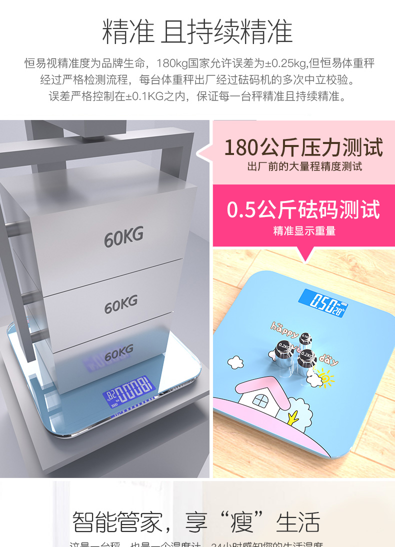 恒易电子秤体重秤家用可充电人体秤成人精准电子称减肥称重体重计