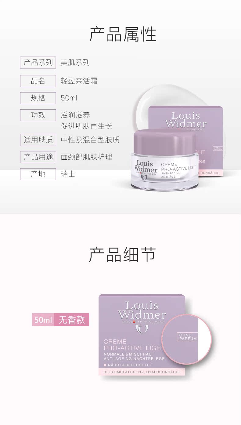 Louis Widmer瑞士瑞肤宝轻盈亲活霜-无香