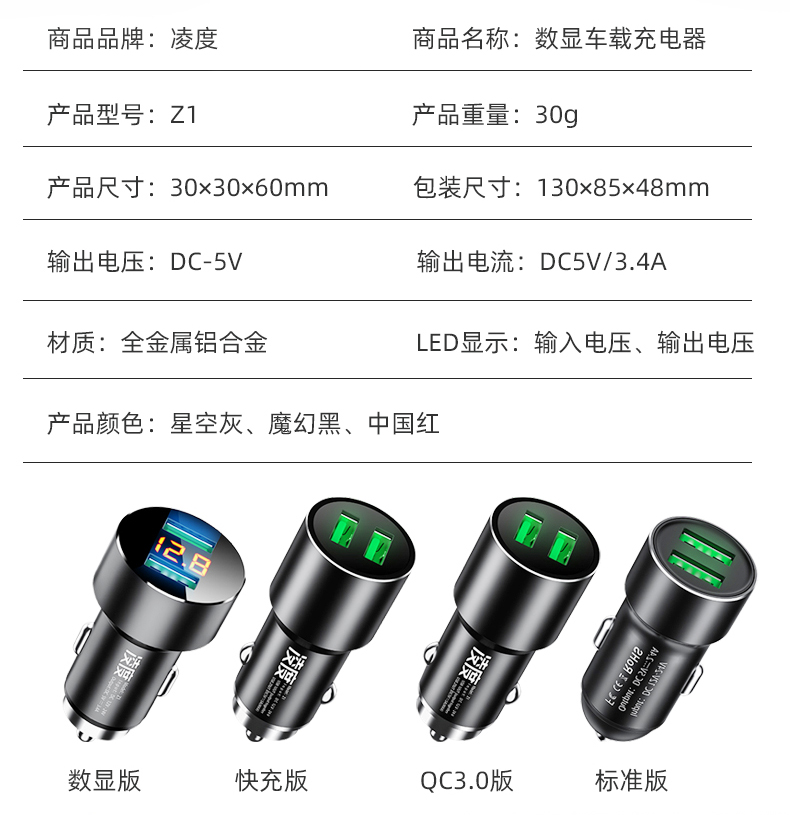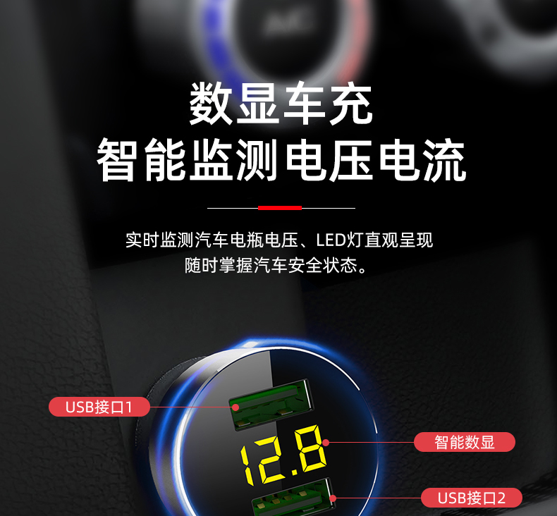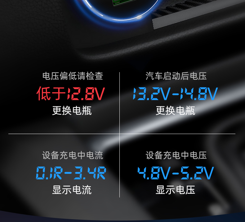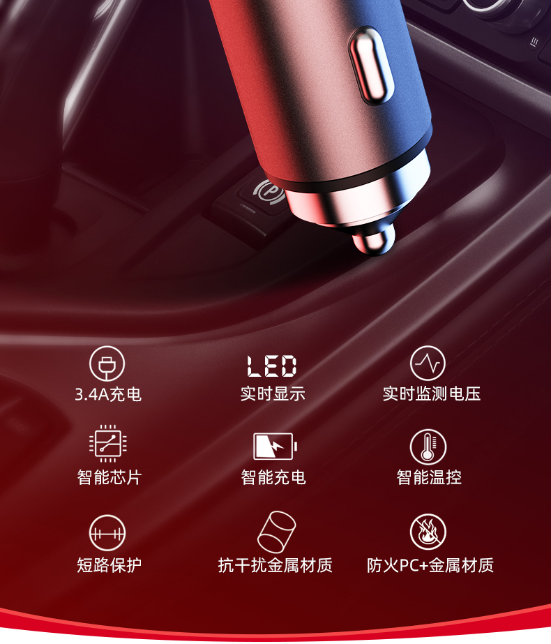 科技金属质感,高颜值,带数显,小巧便捷,耐高温,抗阻燃,充电又快又安全~车主人手必备~非常适用哦~