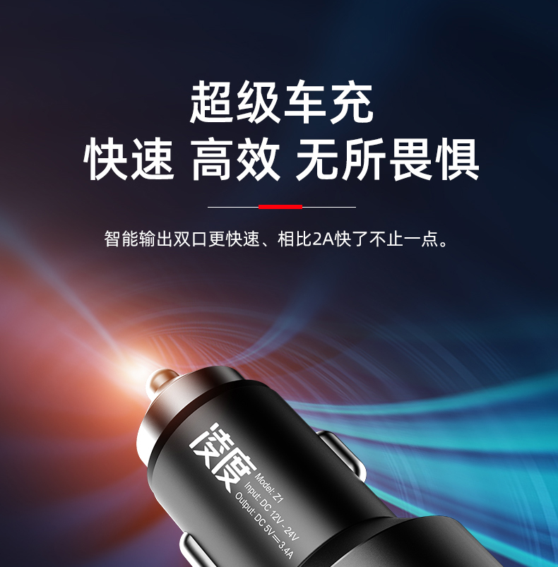 车载充电器汽车车充一拖二点烟器转换插头usb车用多功能手机快充