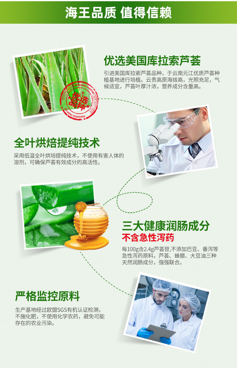 海王官方旗舰店,优选美国库拉索芦荟,植物草本,全叶烘焙提纯,肠道通畅,一身轻松,买2送1,买5送3,送【运费险】。