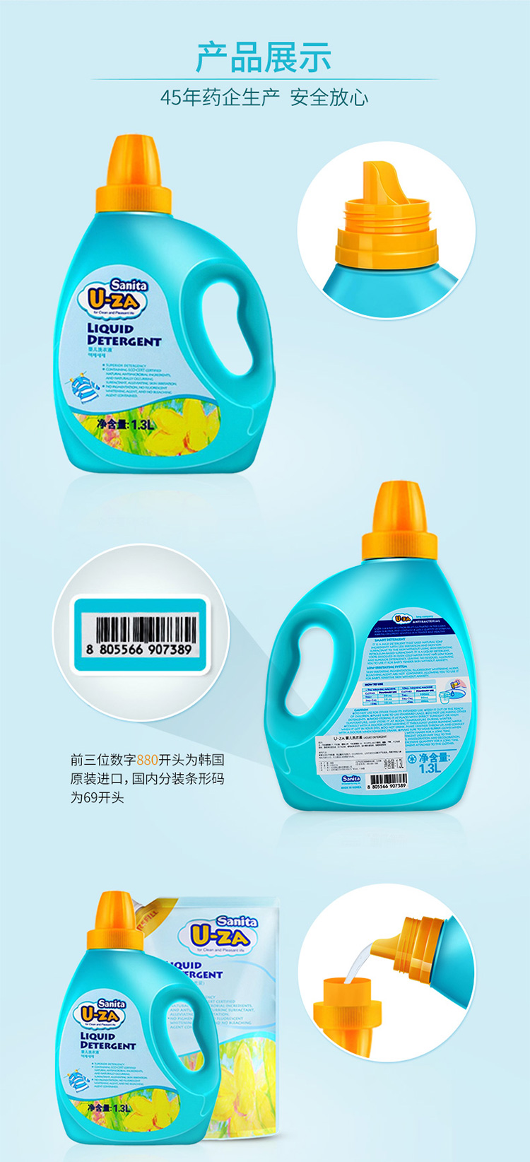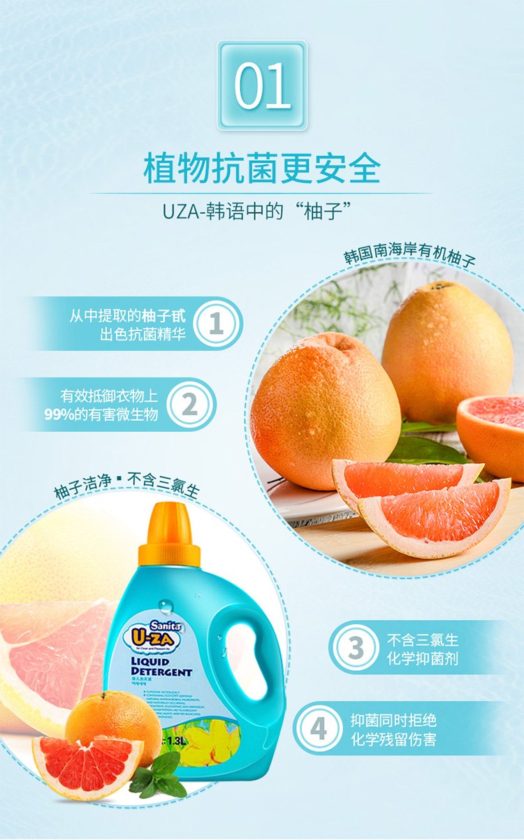 【1L*3袋】韩国进口uza/u-za婴儿洗衣液,品质保证,洗衣好帮手,机洗手洗都好用,海岸黄金柚子提取,天然健康,为您的宝宝保驾护航!