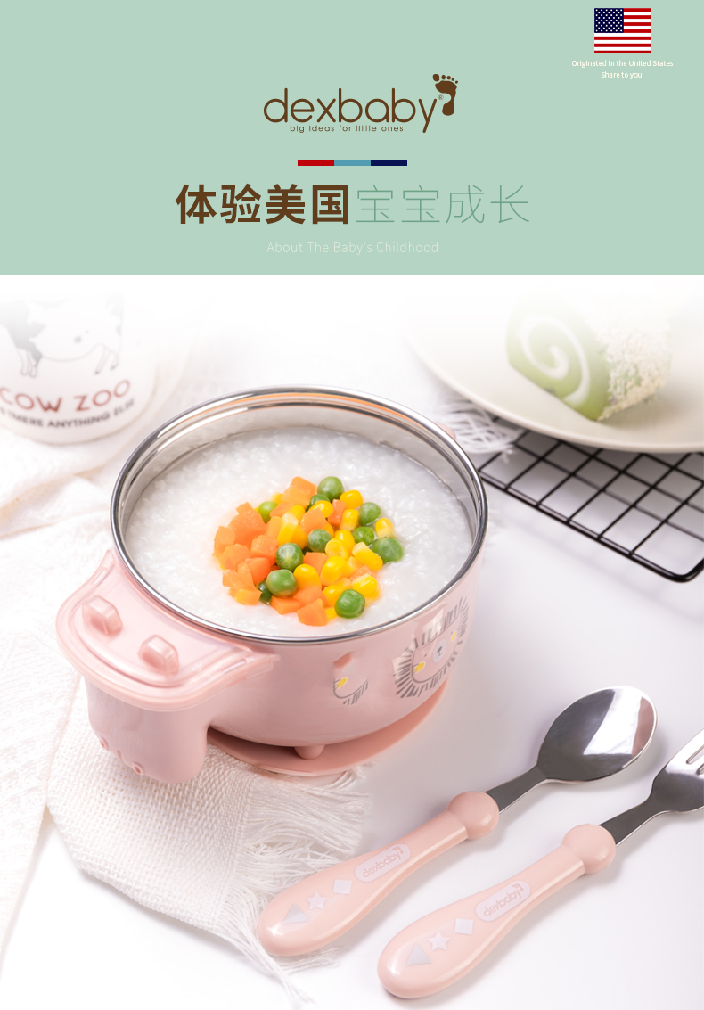 dexbaby宝宝餐具套装婴儿辅食碗宝宝吃饭吸盘碗勺儿童注水保温碗