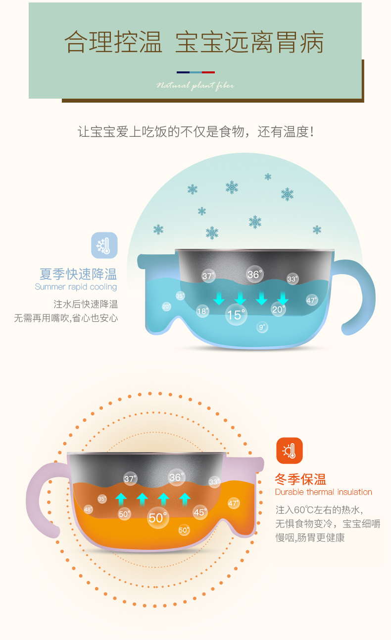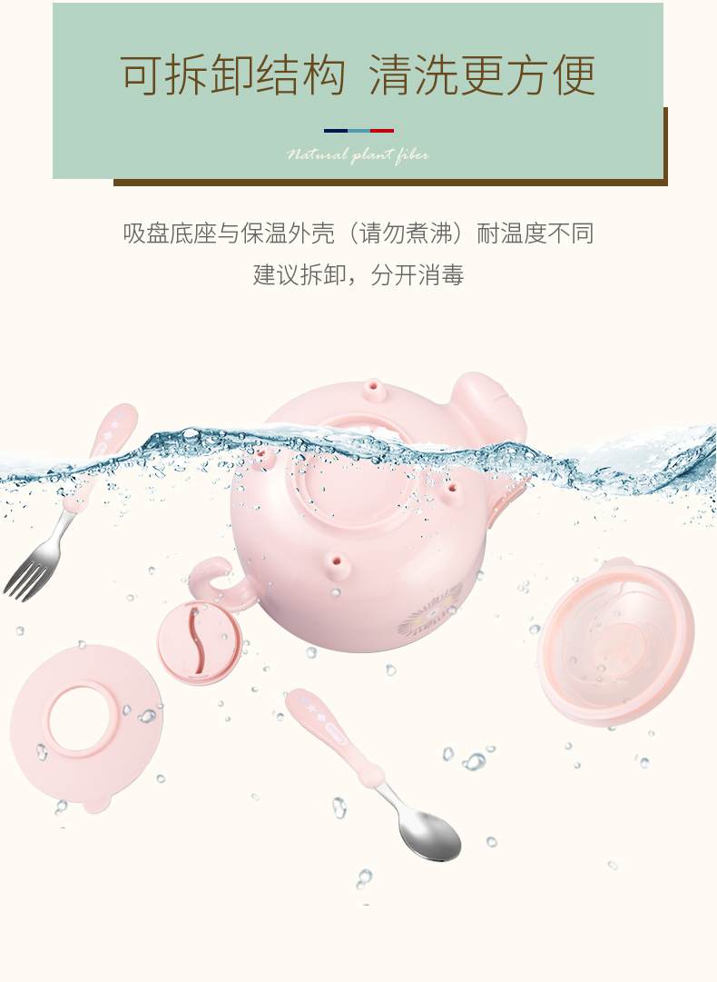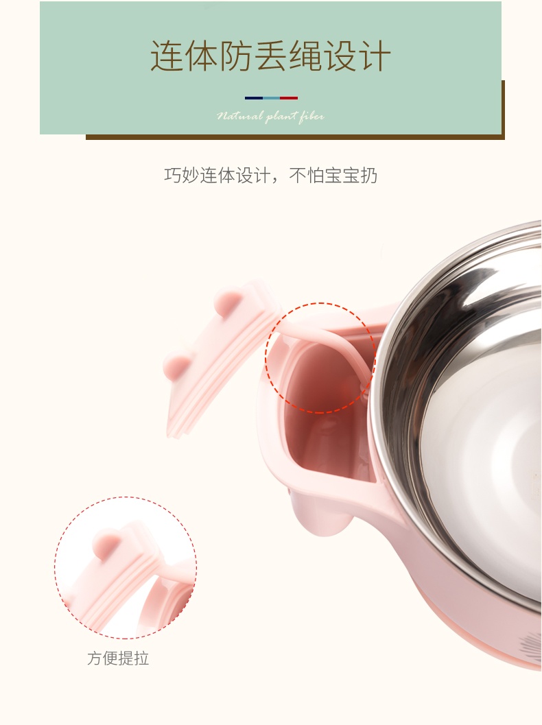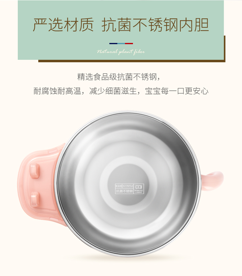 严选材质,抗菌不锈钢内胆,耐腐蚀,耐高温,减少细菌滋生,宝宝每一口更安心