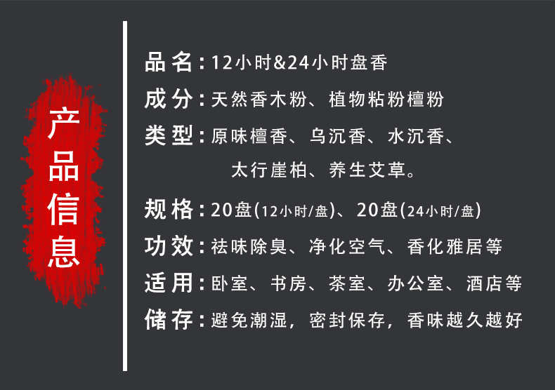 12小时酒店熏香薰盘香24小时檀香驱蚊家用室内卫生间厕所除臭持久