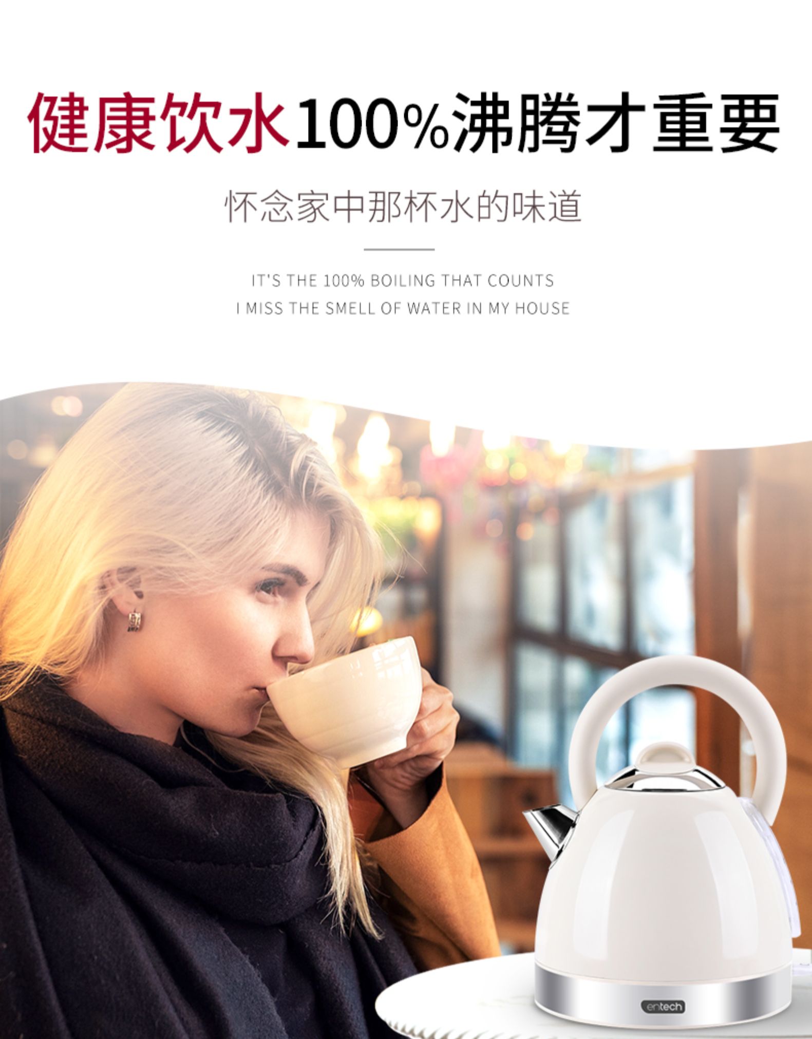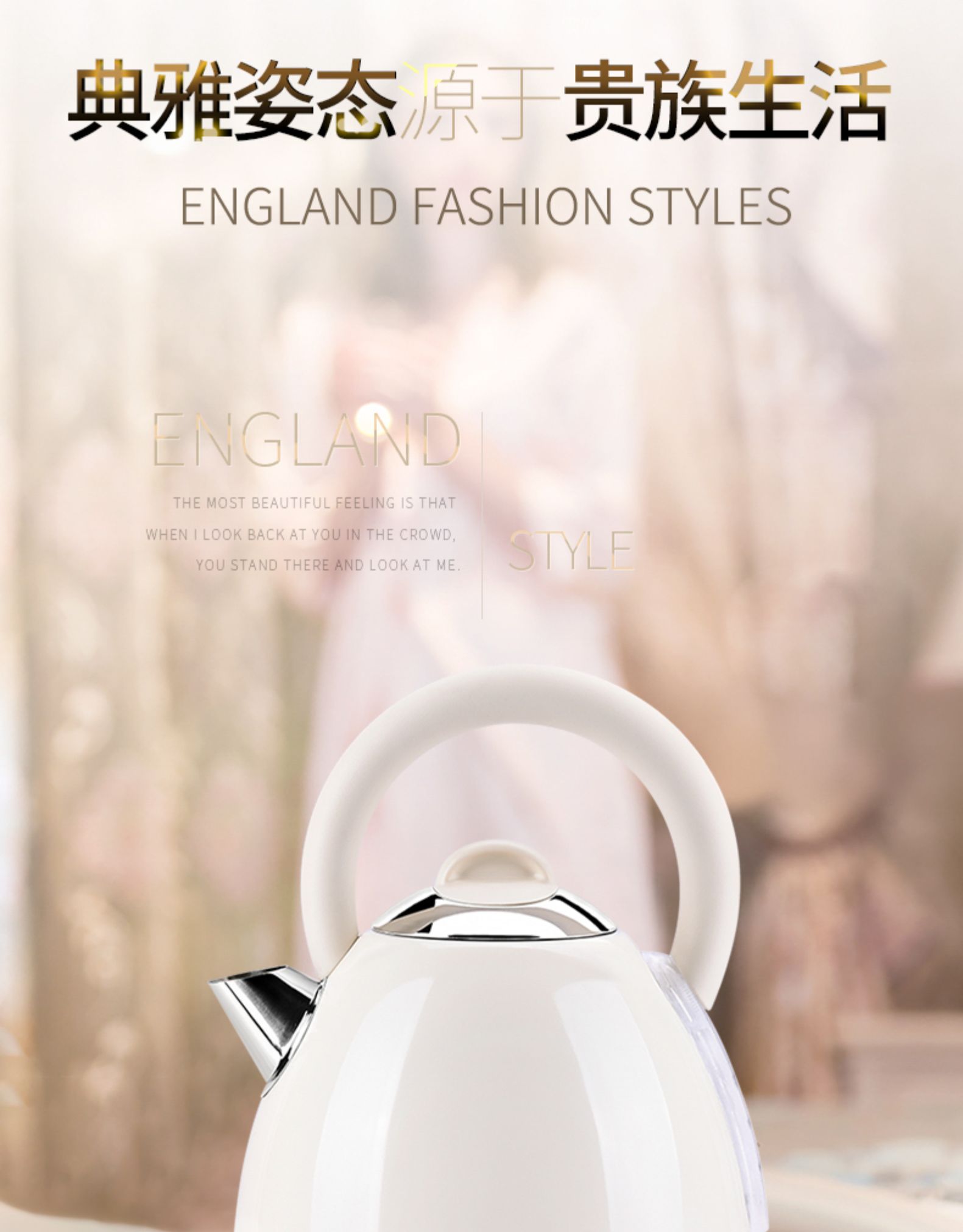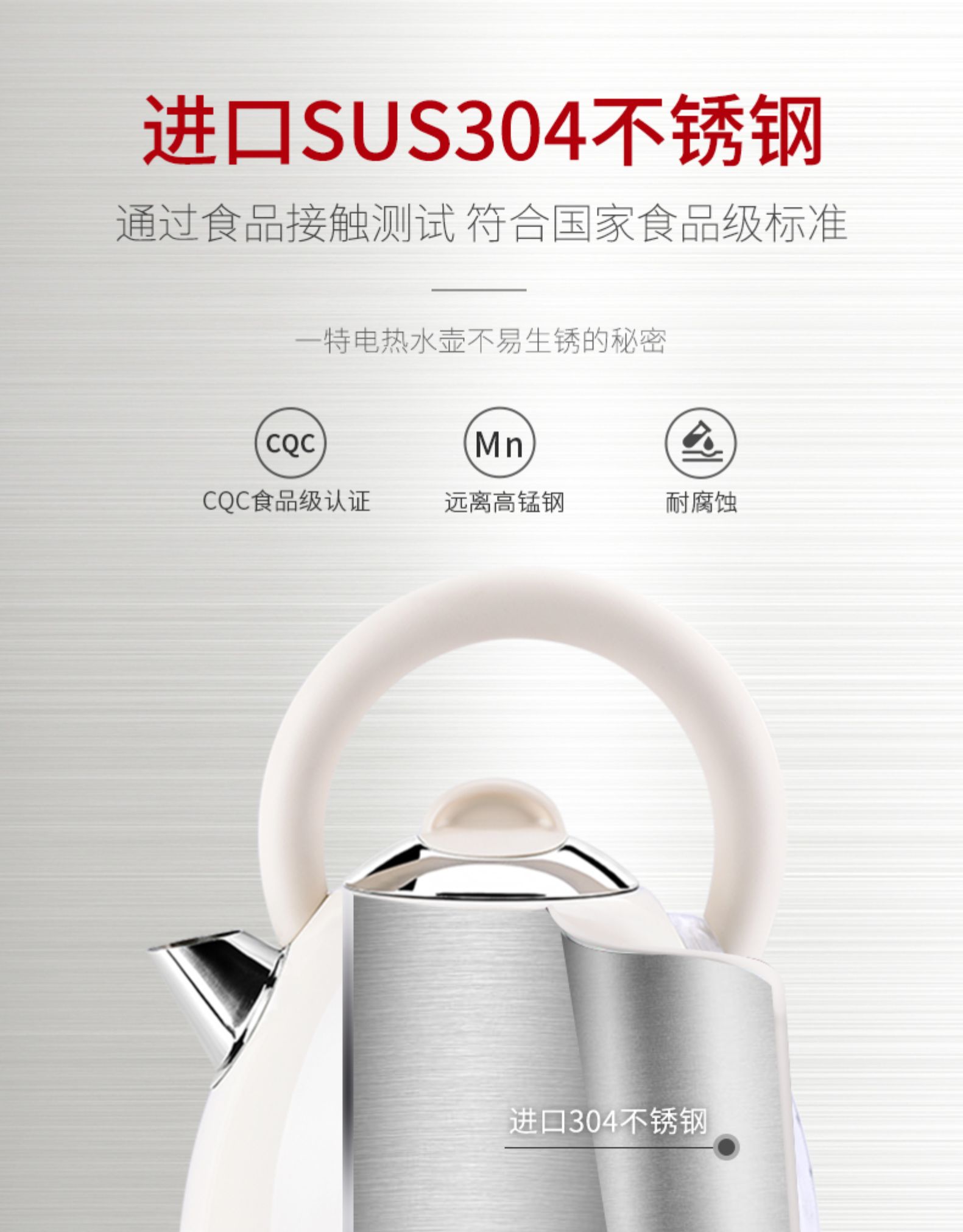 英国一特304不锈钢电热自动断电大容量烧水壶。英国温控器,小身材大容量,精品钢制,经久耐用,兼收纳底座,精工细作,随时随地享用一杯暖暖的水。【十年保修+三年包换】