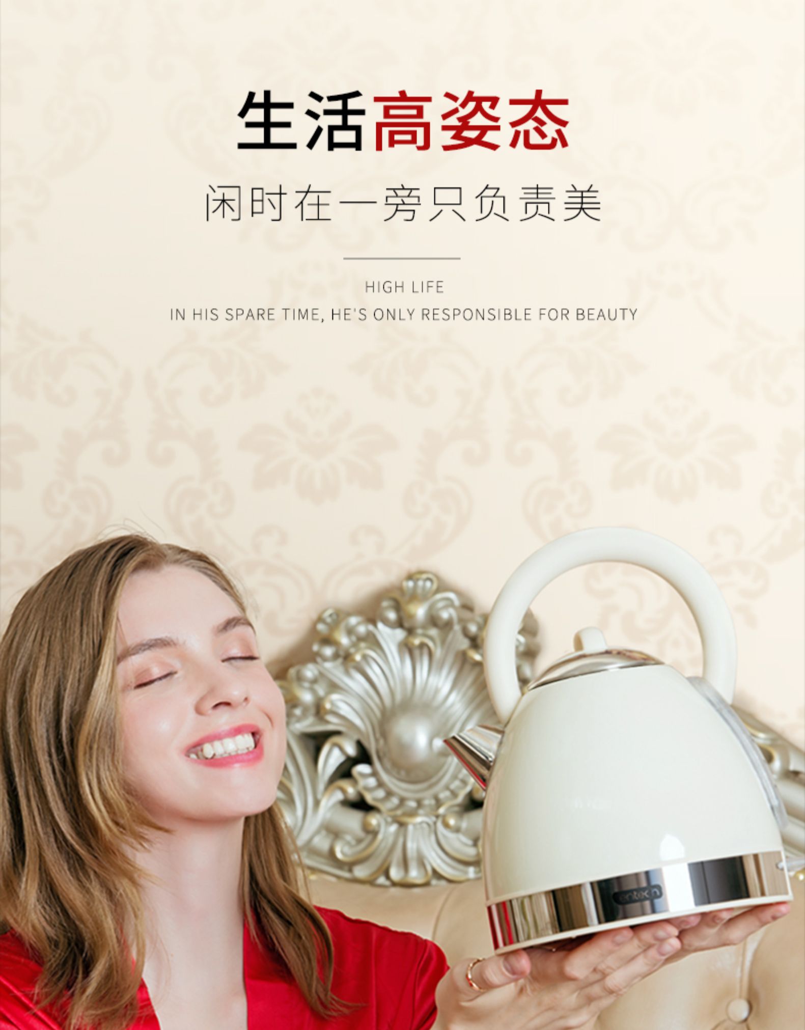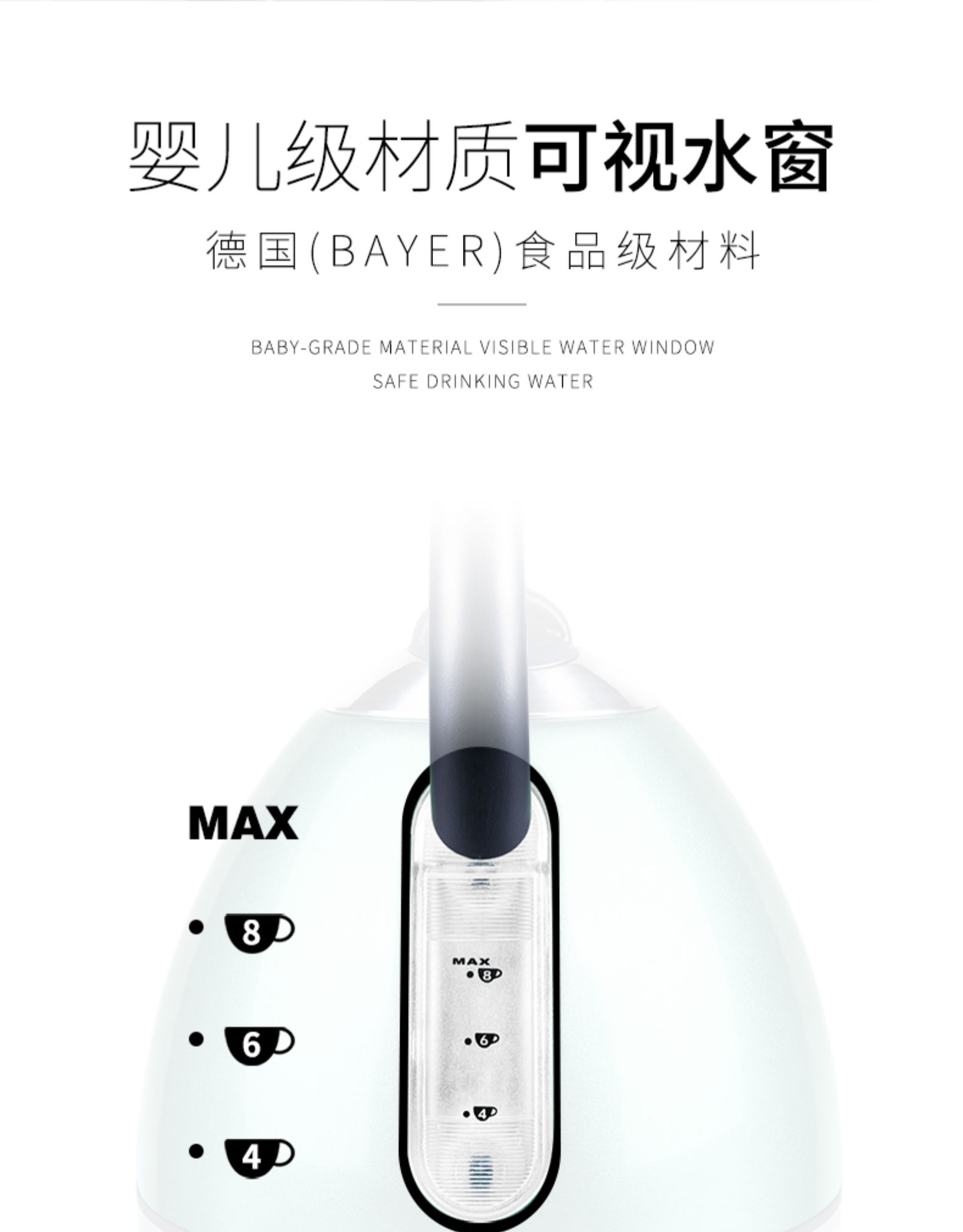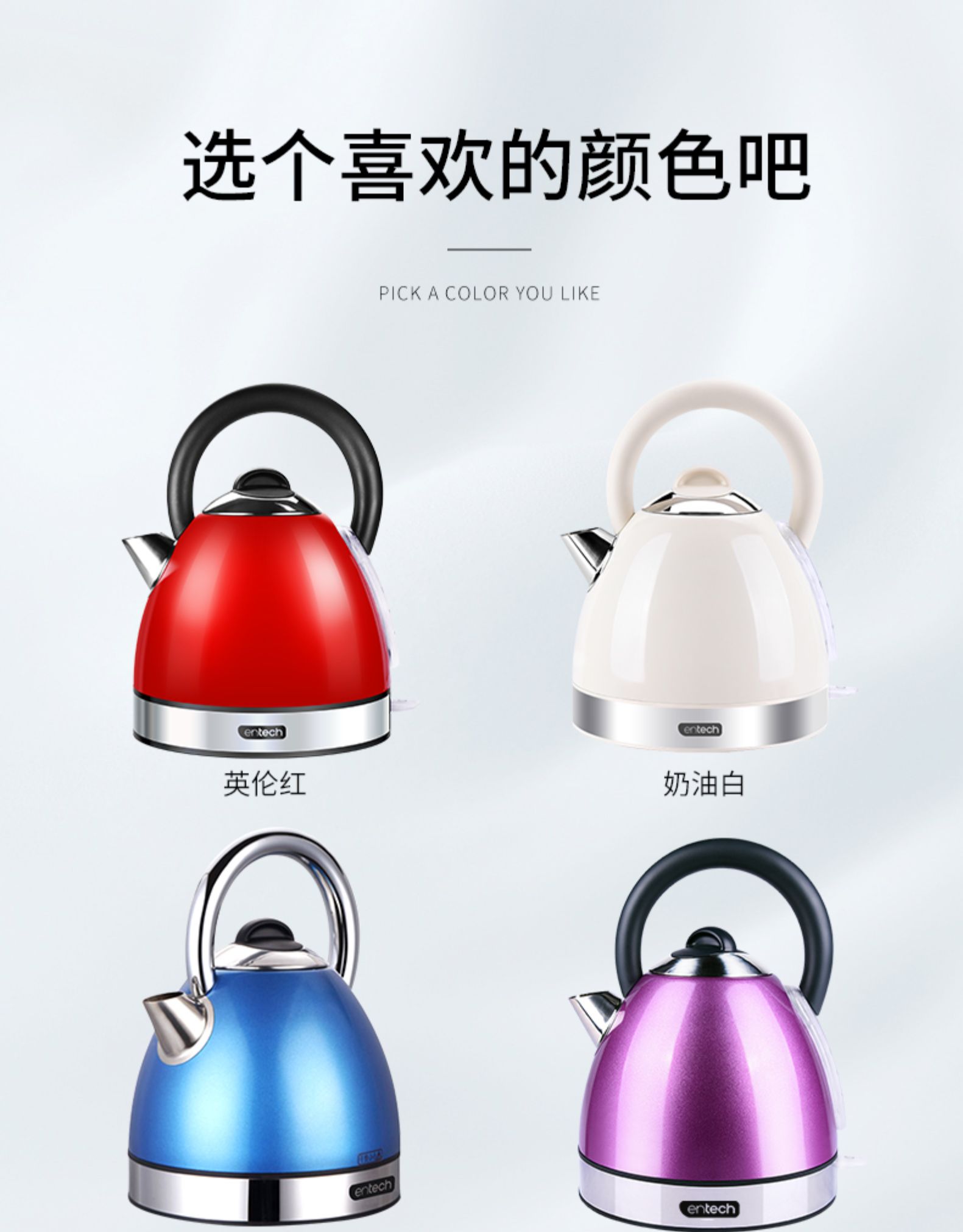 英国一特304不锈钢电热自动断电大容量烧水壶。英国温控器,小身材大容量,精品钢制,经久耐用,兼收纳底座,精工细作,随时随地享用一杯暖暖的水。【十年保修+三年包换】