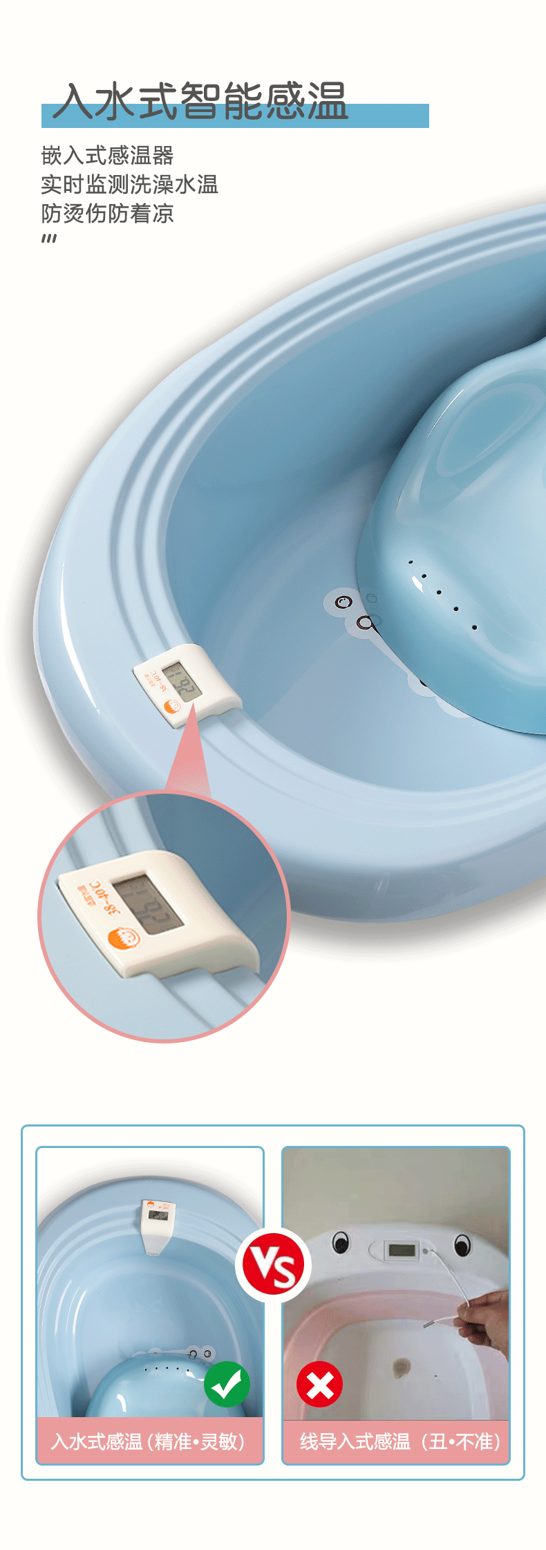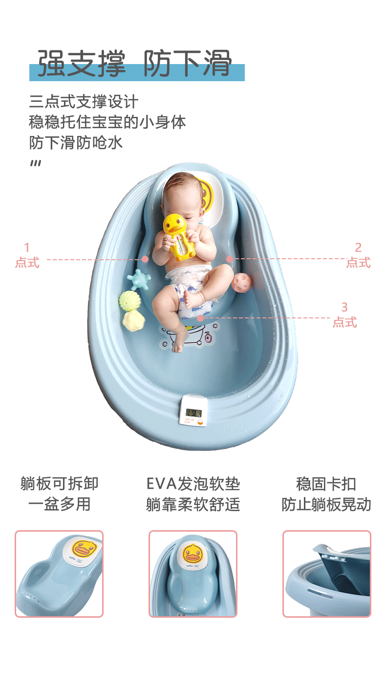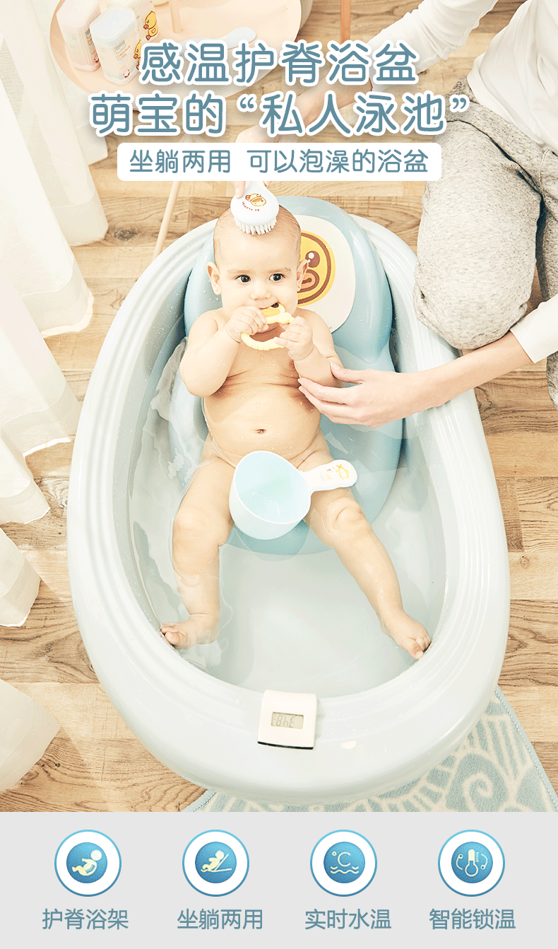 【推荐理由】:淘宝主播薇娅viya,祖艾妈等直播推荐,科学曲度趟板,给柔嫩脊椎适宜的力量支撑,三点是支撑设计,嵌入式感温器,实时监测水温,让宝宝爱上洗澡!【七天无理由退换】