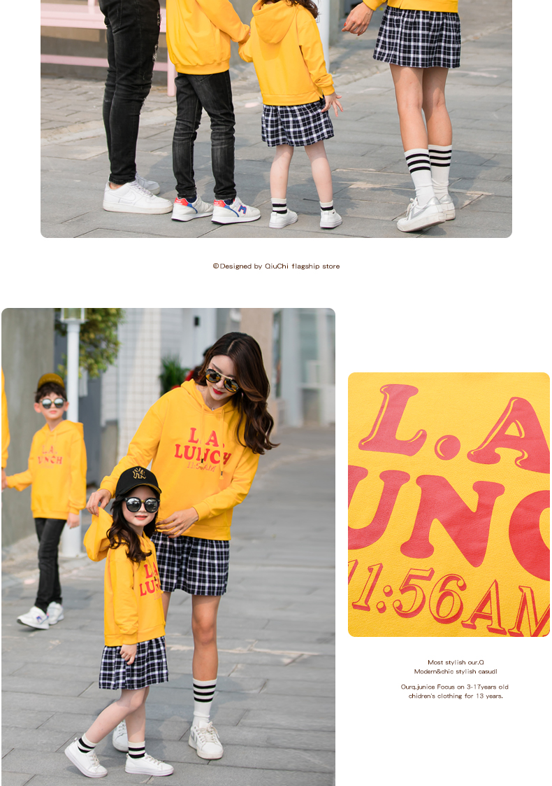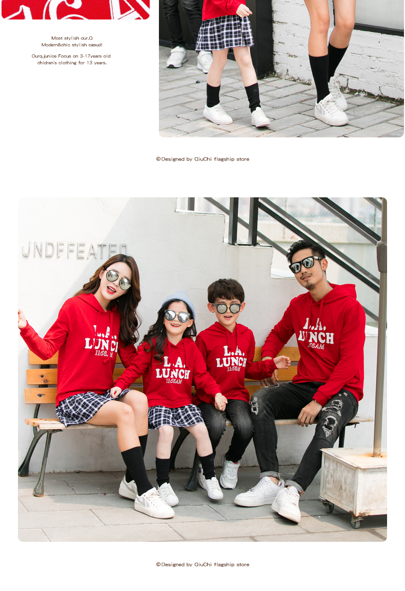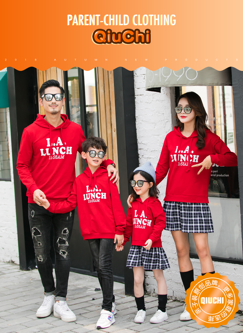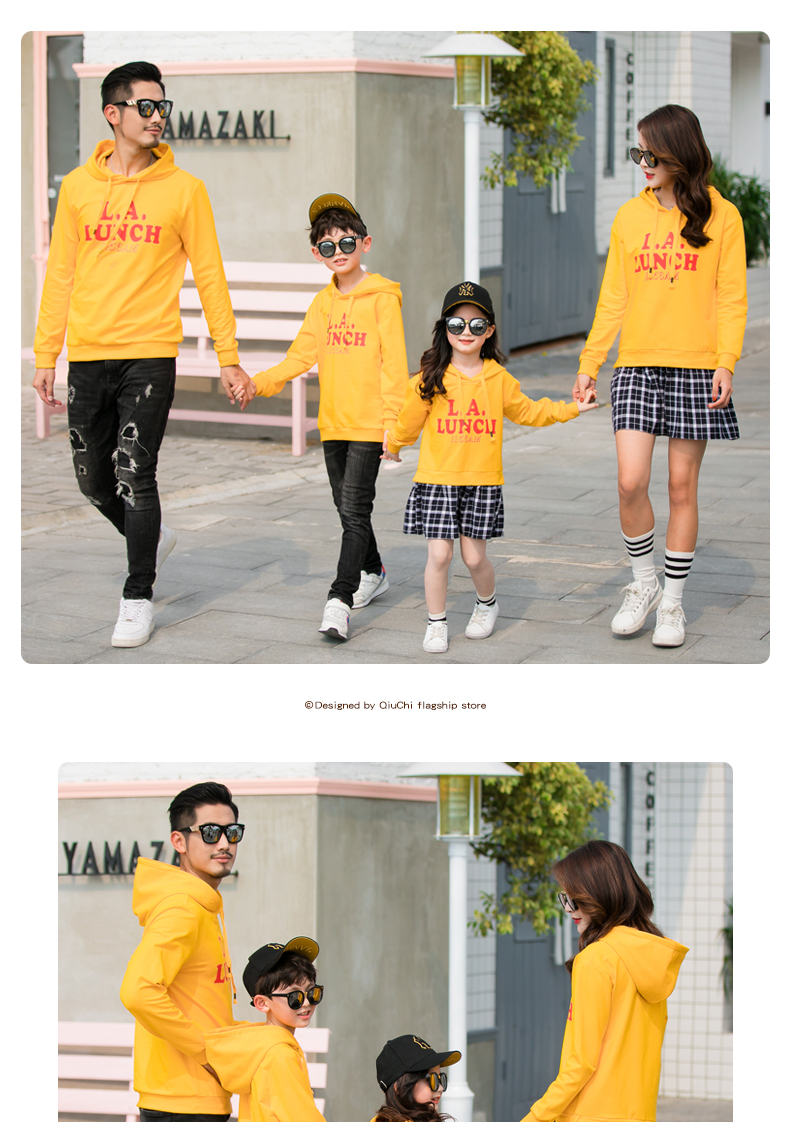 2019新款亲子装秋装卫衣全家装潮洋气母女裙父子连帽外套一家三口