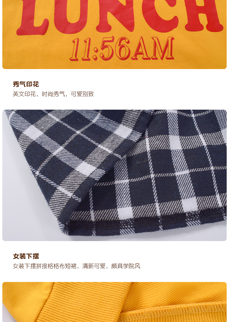 【推荐理由】连帽设计小巧可爱,青春活力,清新阳光,秀气的英文印花,时尚小资,简约精致,英文绣花,时尚别致,牢固耐磨,格格布撞色短裙,典雅气质青春朦胧透气!