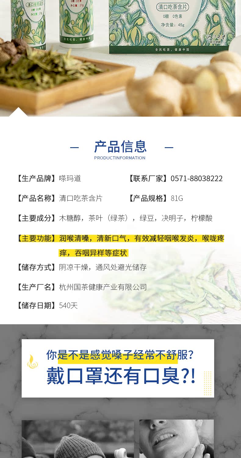 养生茶含片木糖醇清口无糖口香糖随身护嗓润喉口气清新接吻薄荷糖
