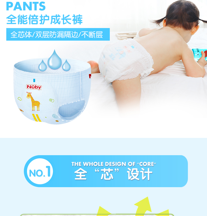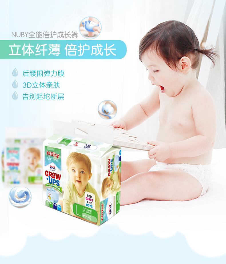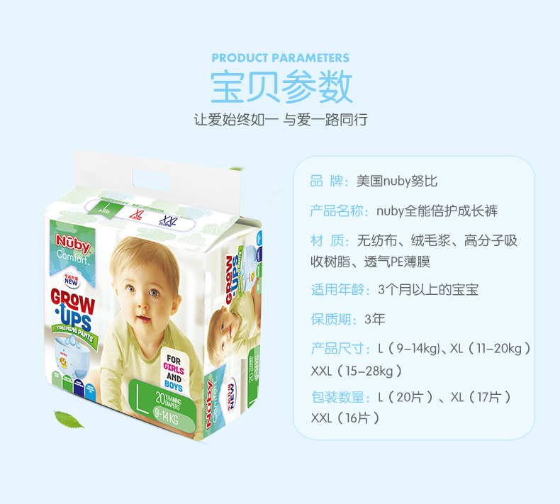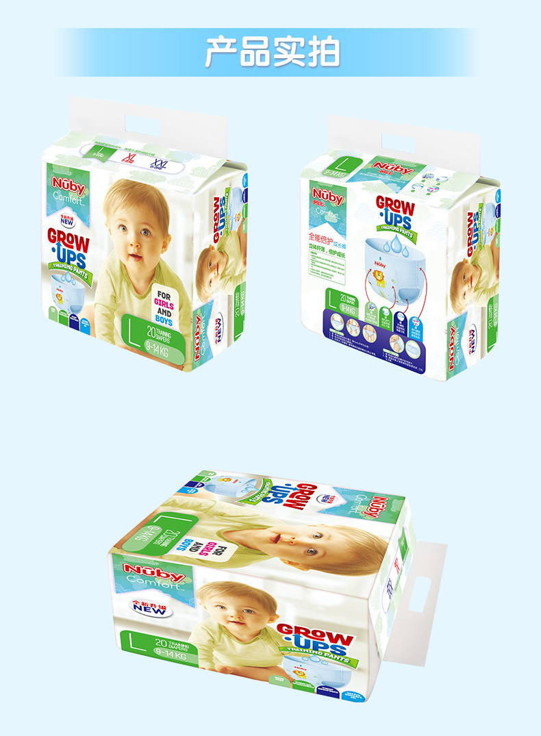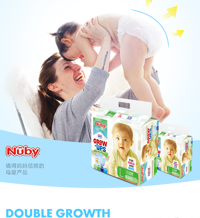 Nuby努比宝宝拉拉裤超薄透气纸尿裤,婴儿学步裤成长裤大号L20片,超薄透气。