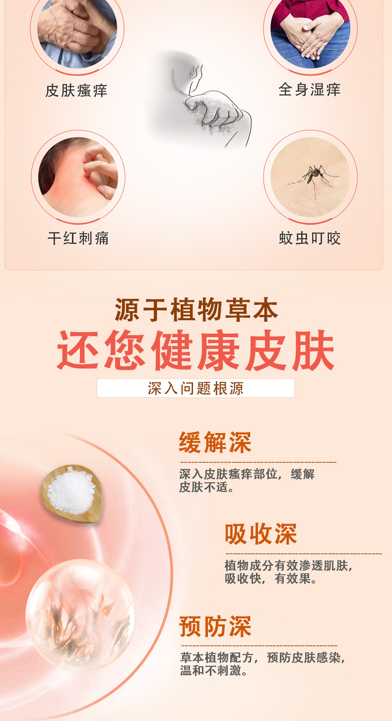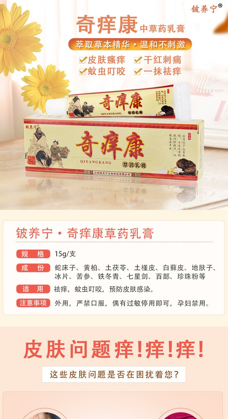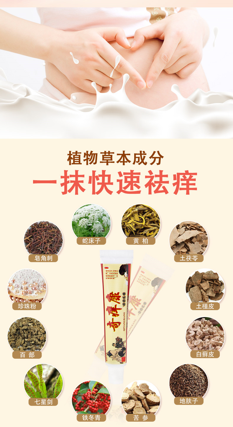 奇痒康中草药乳膏, 萃取草本精华,温和不刺激, 深入皮肤瘙痒部位,缓解皮肤不适, 植物成分有效渗透肌肤,吸收快