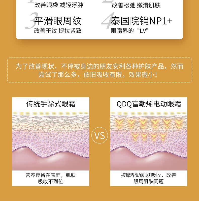 【泰国监制出品】来自钻石级成分富勒烯的护肤秘密,电动眼霜吸收更好,每分钟按摩9000次,黑眼圈细纹的“电动小烫斗”,淡化黑眼圈,抚平细纹,改善眼袋鱼子酱提取物减缓眼周皮肤衰老!熬夜党的救星!