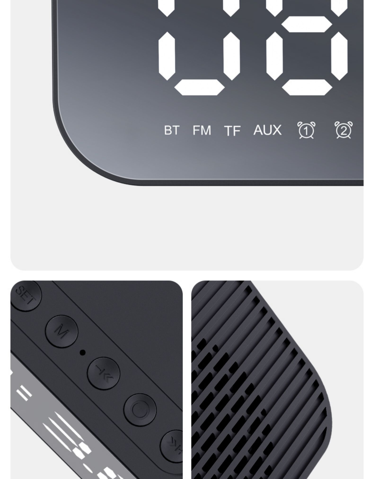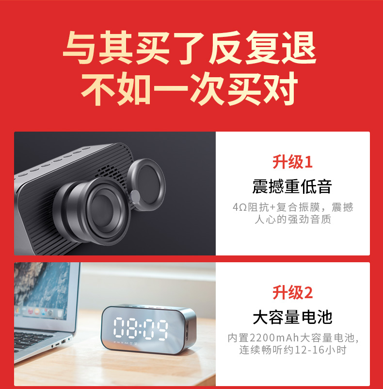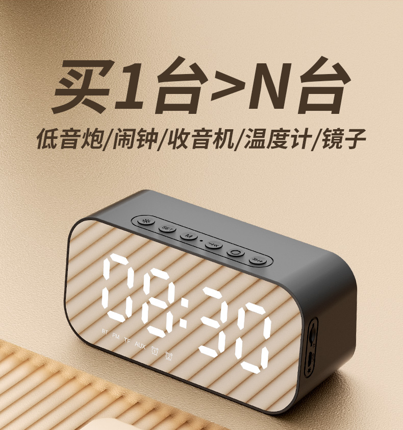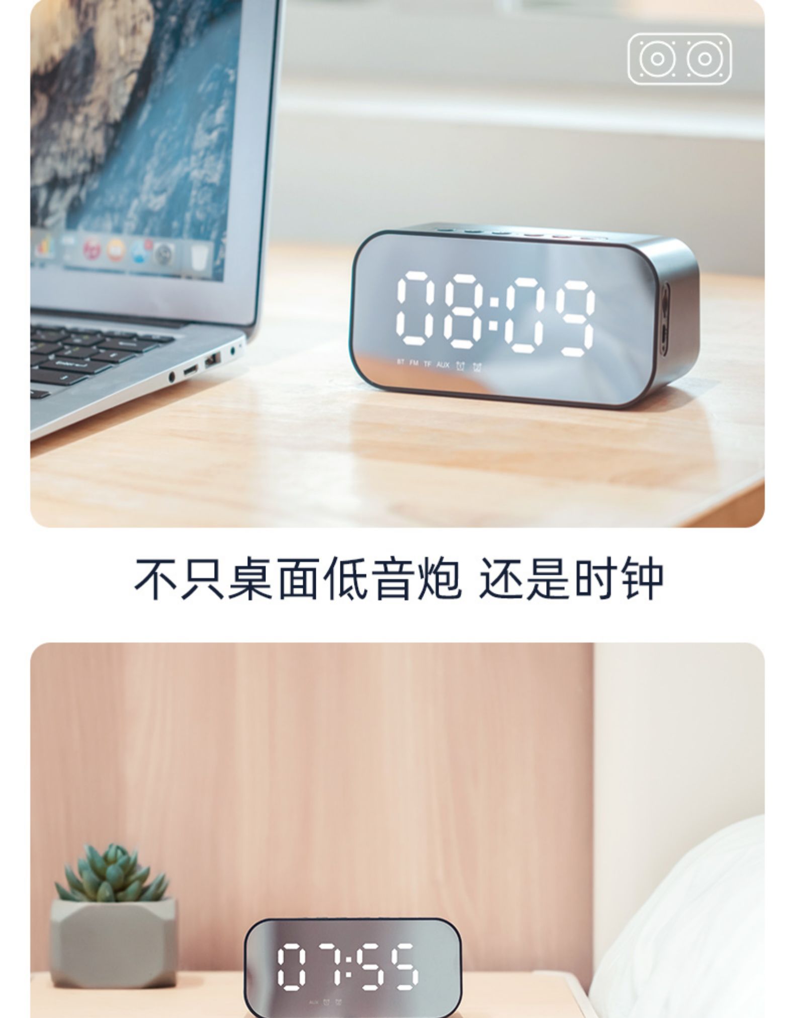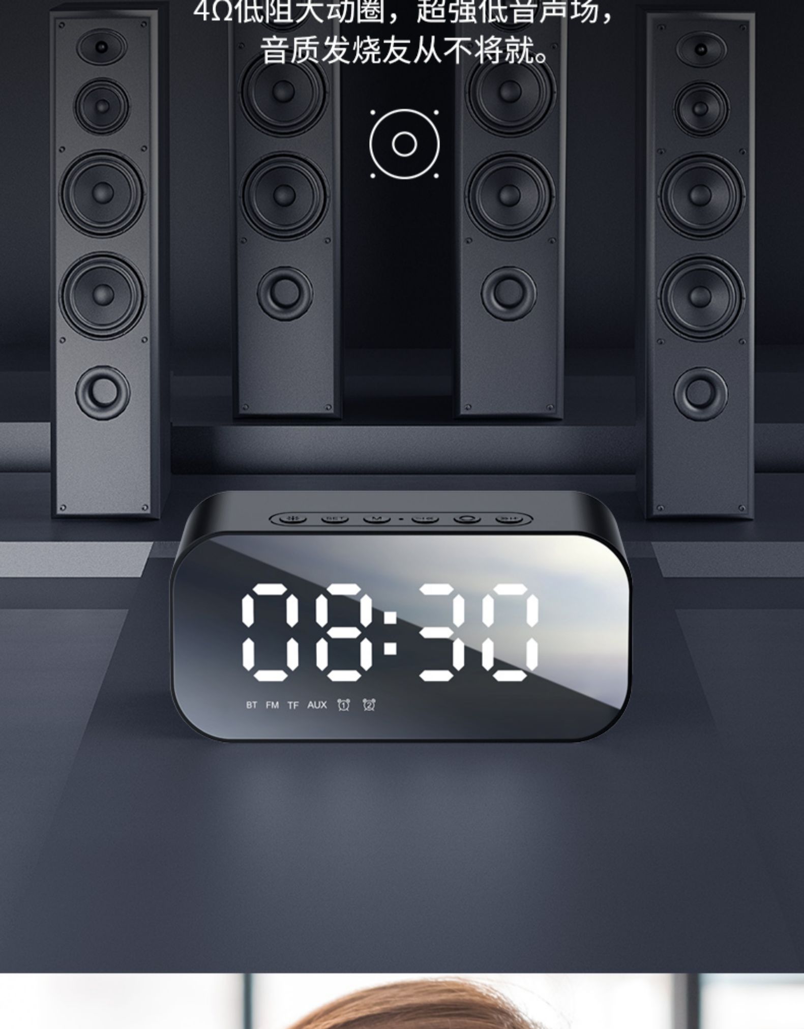 【4.8高评分!】震撼蓝牙音箱,闹钟提示大声播报,震撼重低音,音质发烧友从不将就,LED液晶全面屏,在听音乐的同时,给爱美的你当镜子使用!