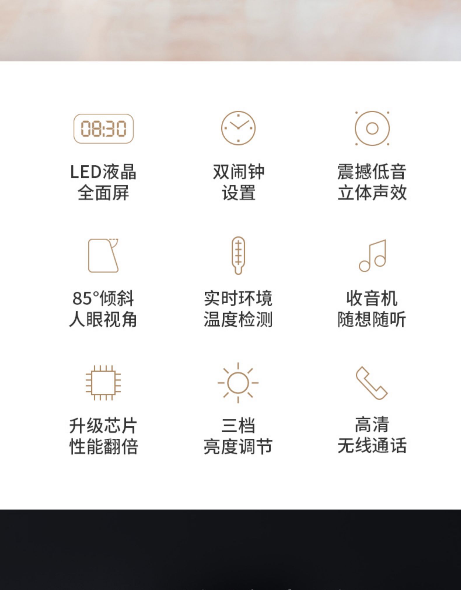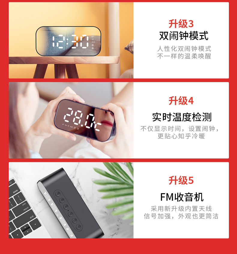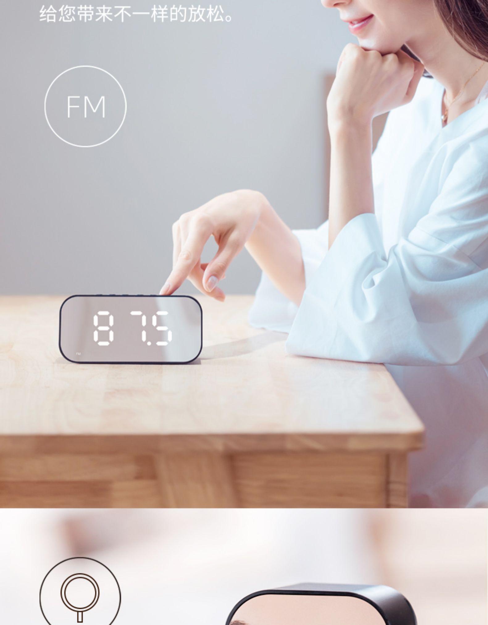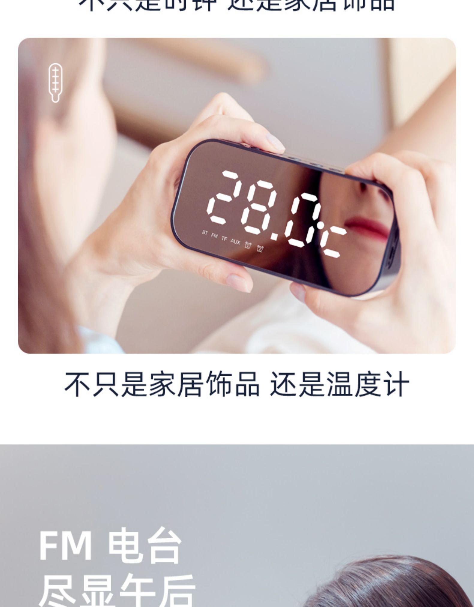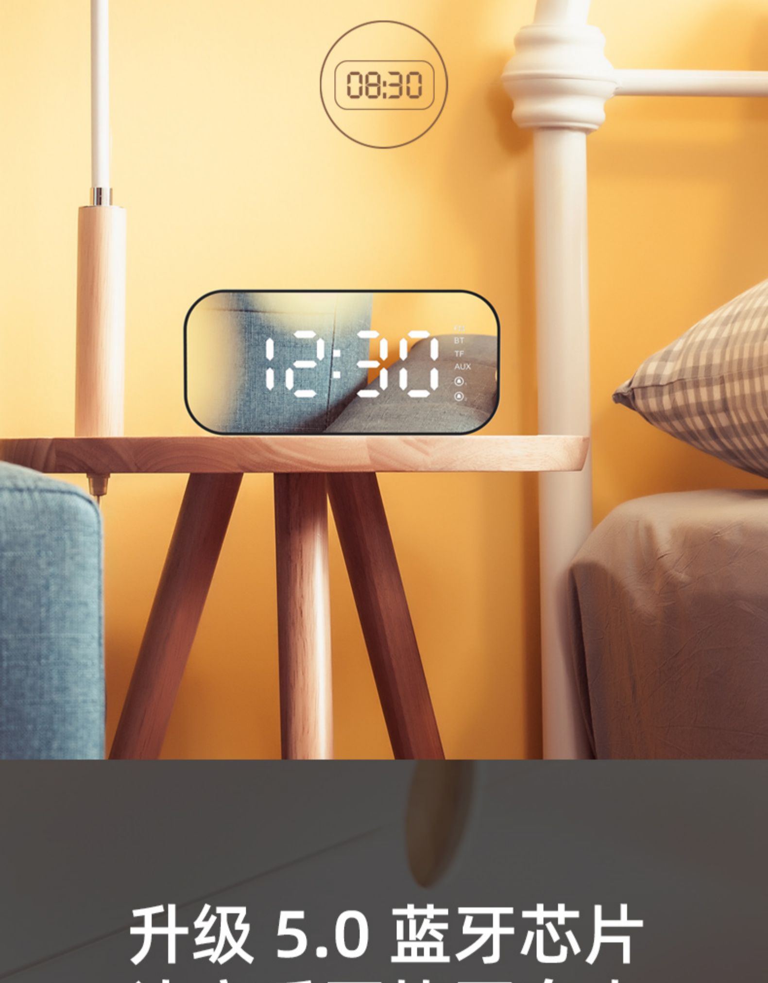 【4.8高评分!】震撼蓝牙音箱,闹钟提示大声播报,震撼重低音,音质发烧友从不将就,LED液晶全面屏,在听音乐的同时,给爱美的你当镜子使用!